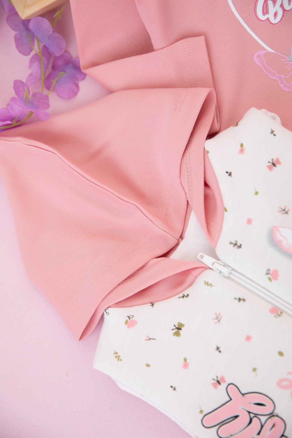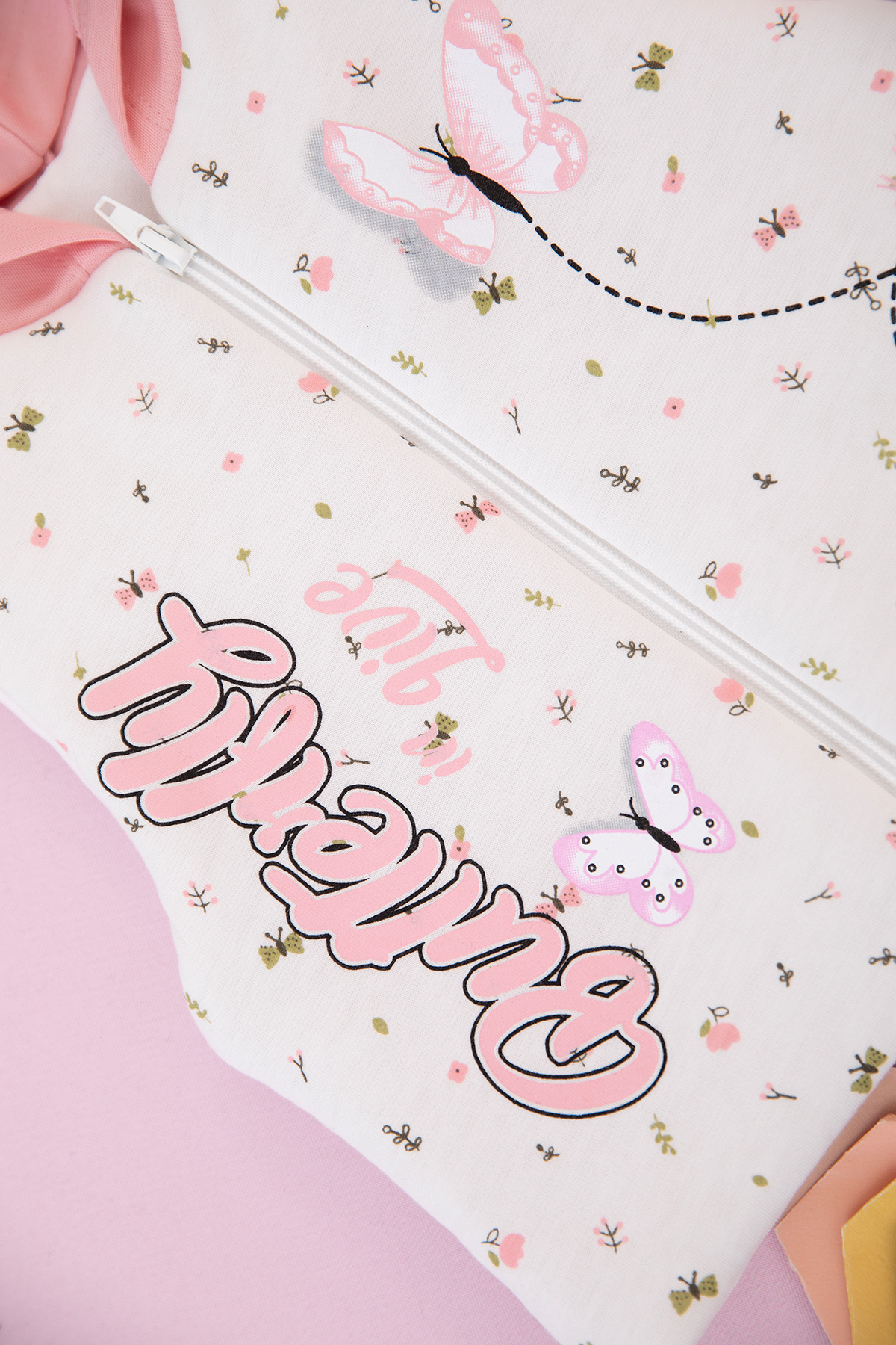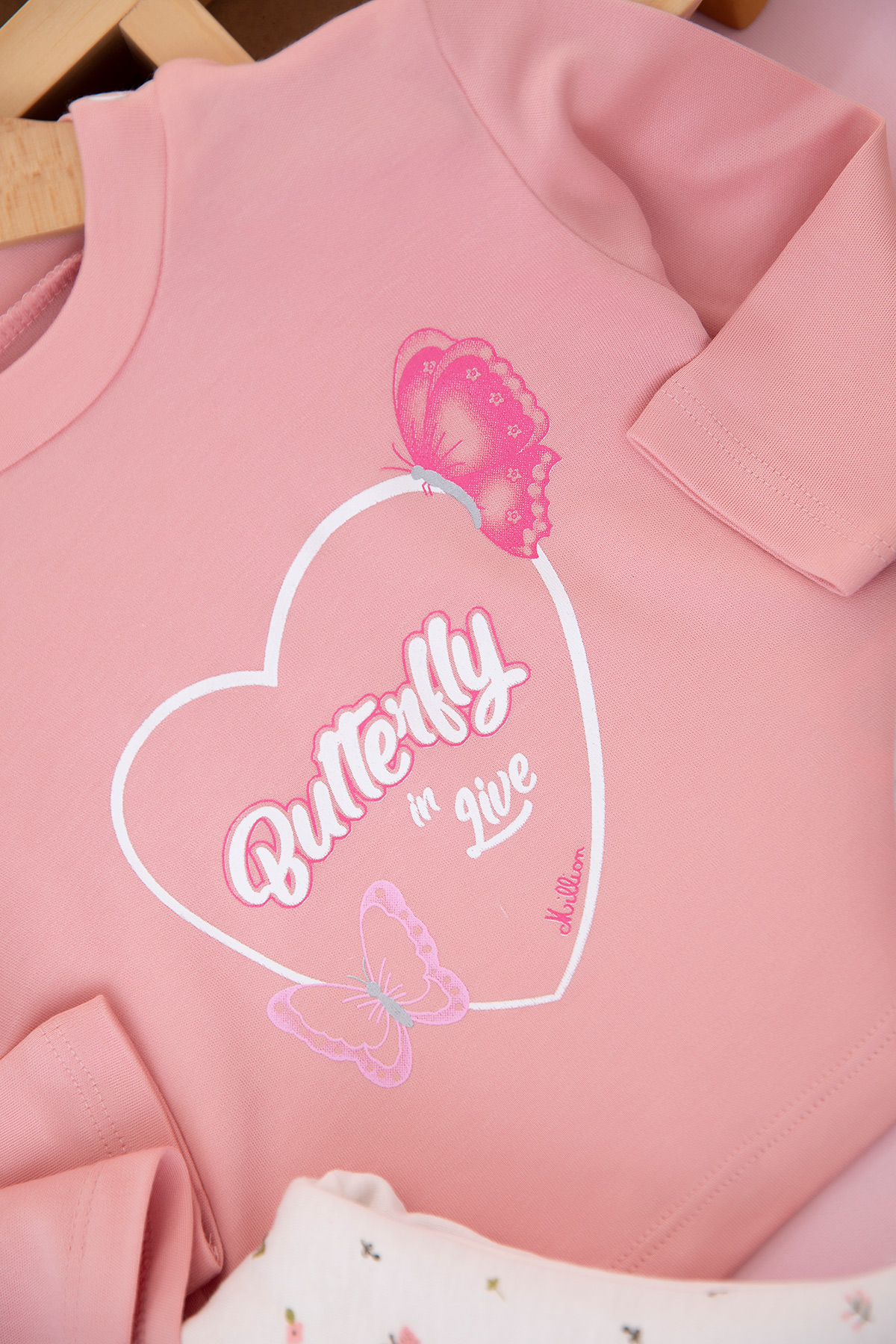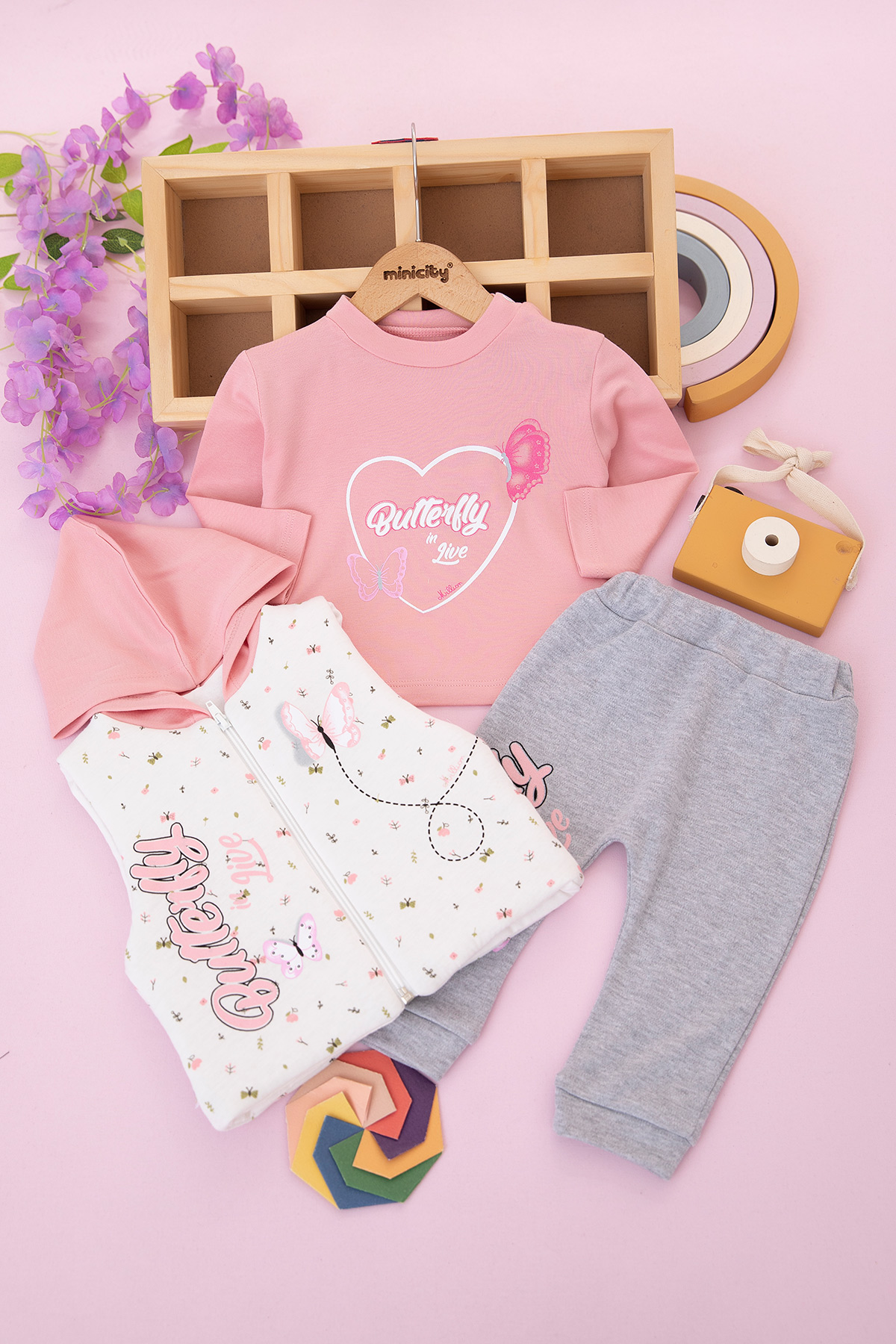 Kız Bebek Kelebek Baskılı Yelekli Üçlü Takım - 4102 (3-12 Ay)