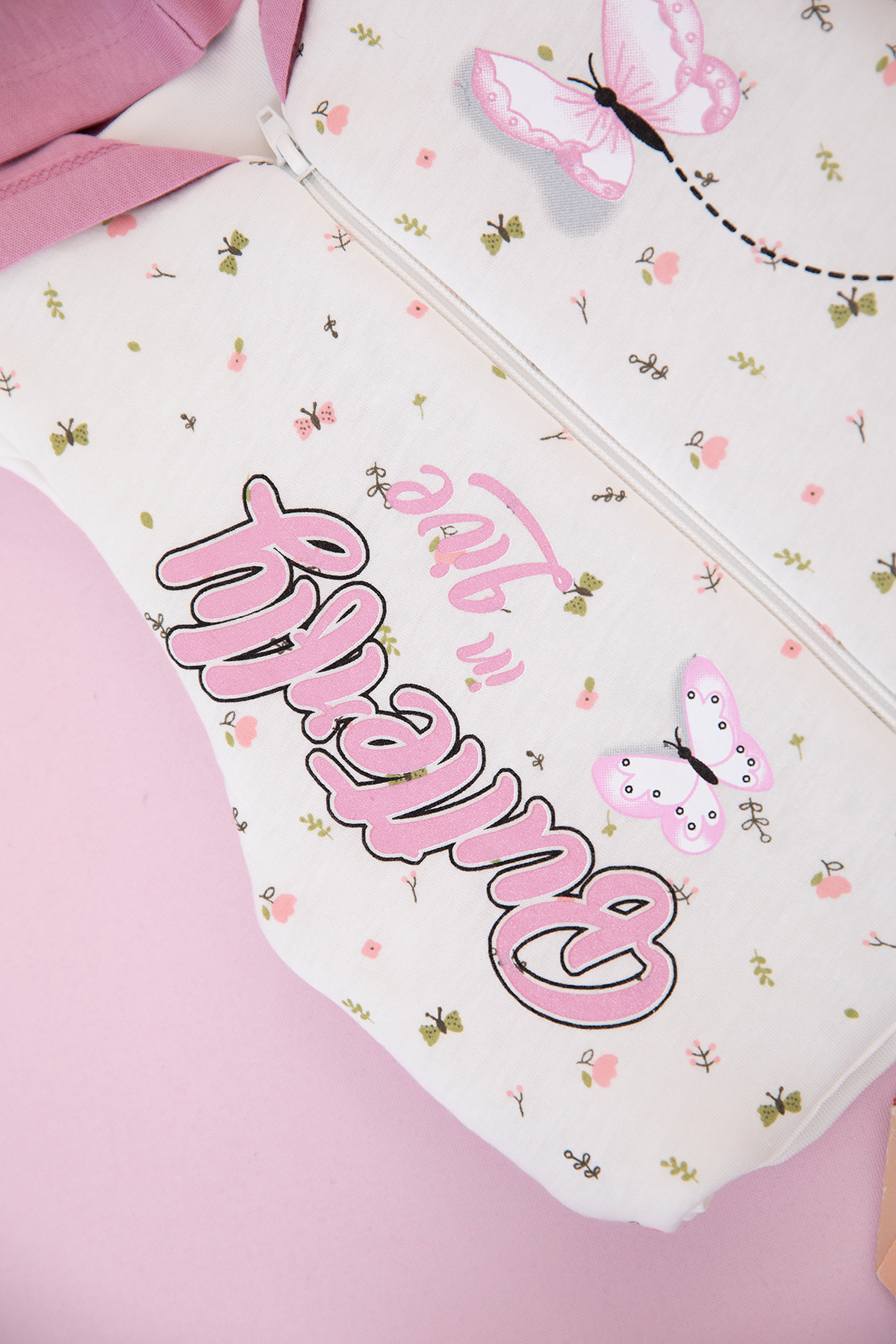 Kız Bebek Kelebek Baskılı Yelekli Üçlü Takım - 4102 (3-12 Ay)