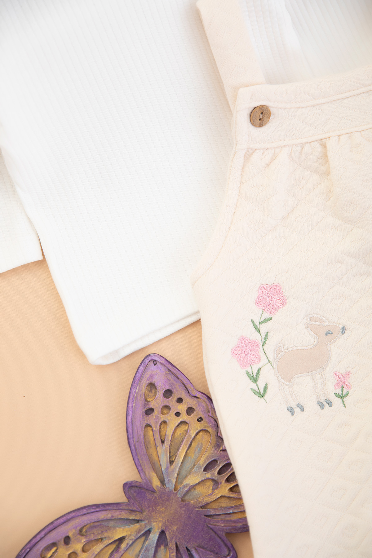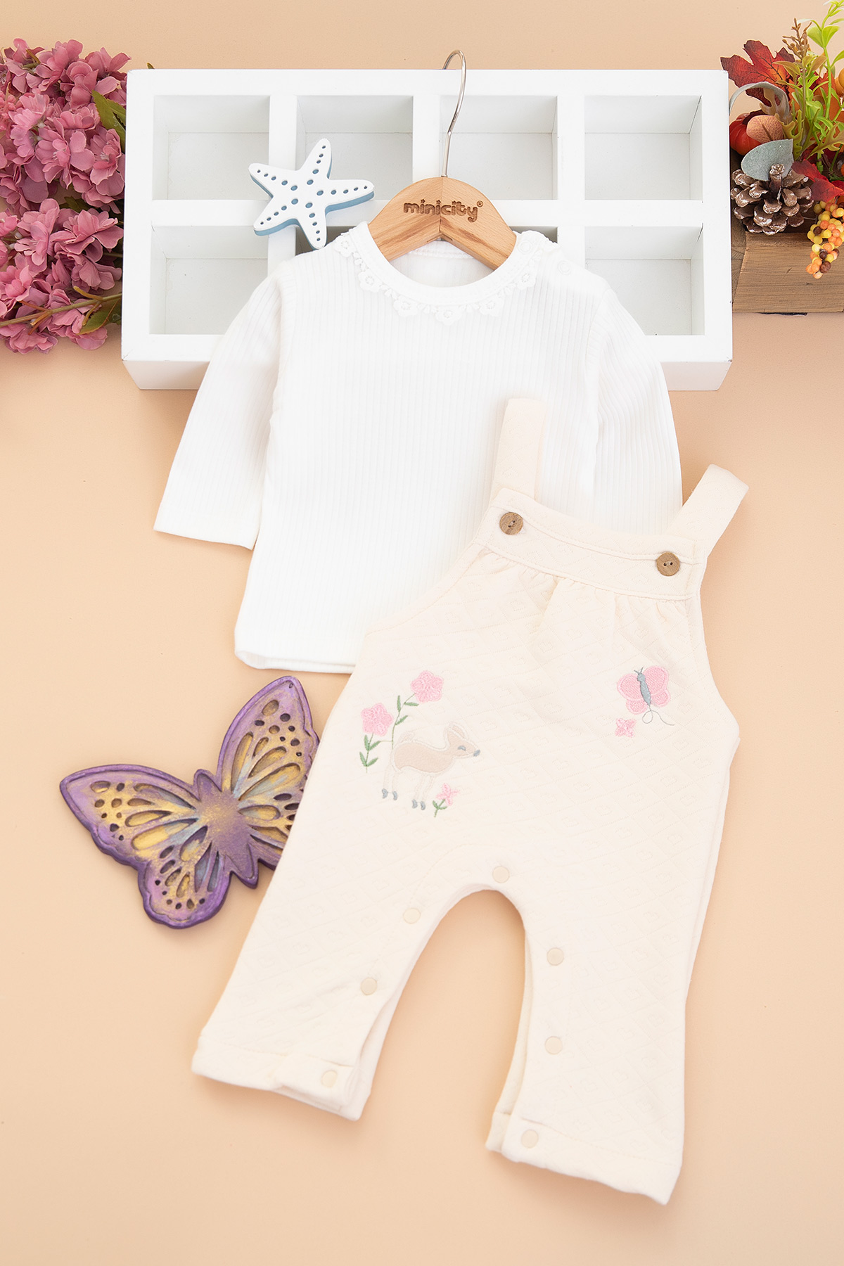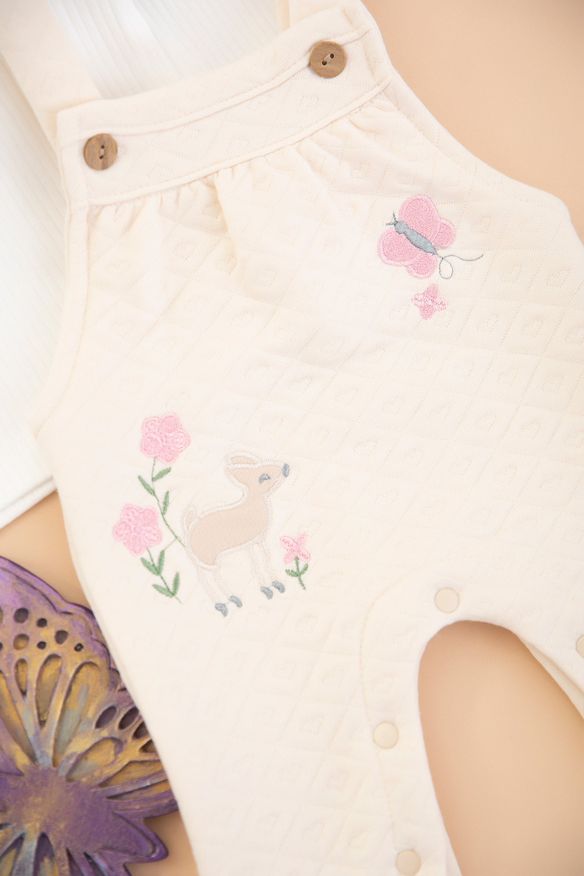 Kız Bebek Kelebek Nakışlı Kapitone Salopet - 10343 (3-12 Ay)