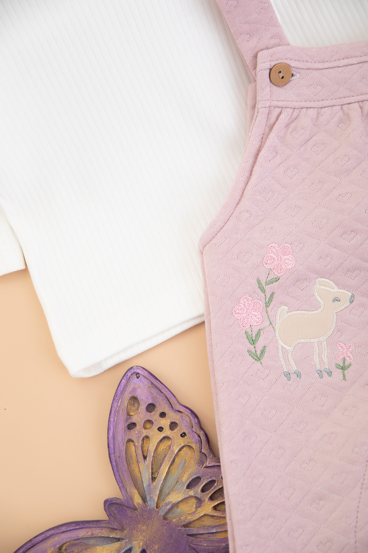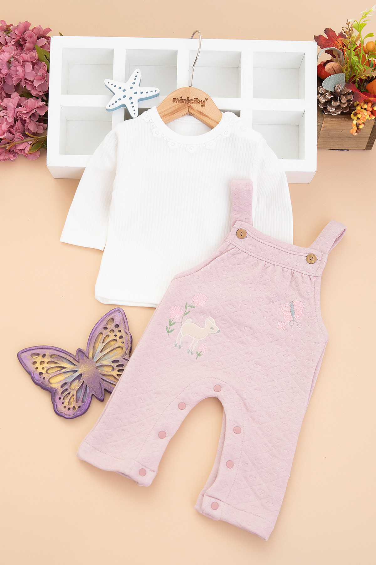 Kız Bebek Kelebek Nakışlı Kapitone Salopet - 10343 (3-12 Ay)