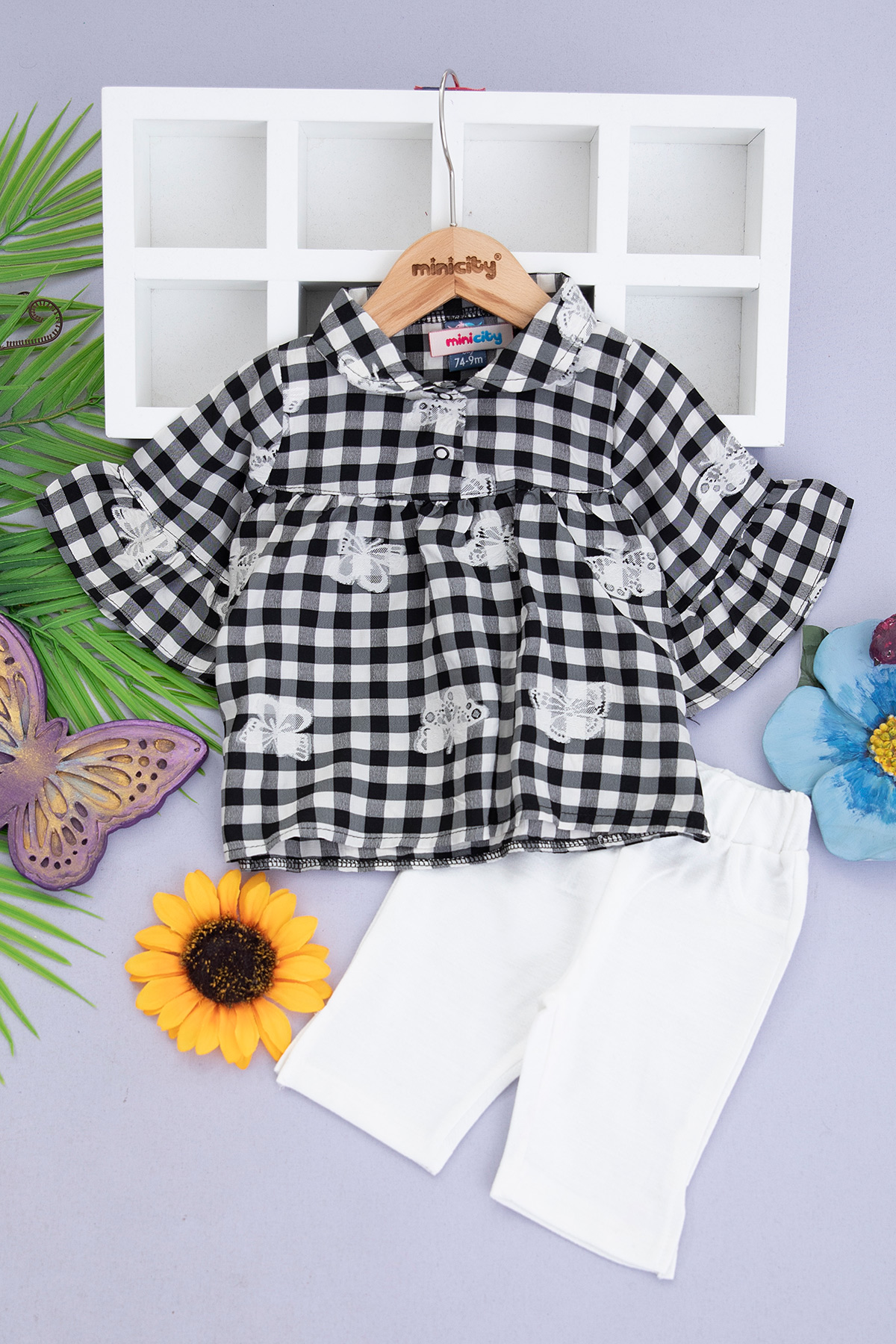 Kız Bebek Kelebek Nakışlı Şortlu Takım - 23366 (9-24 Ay)