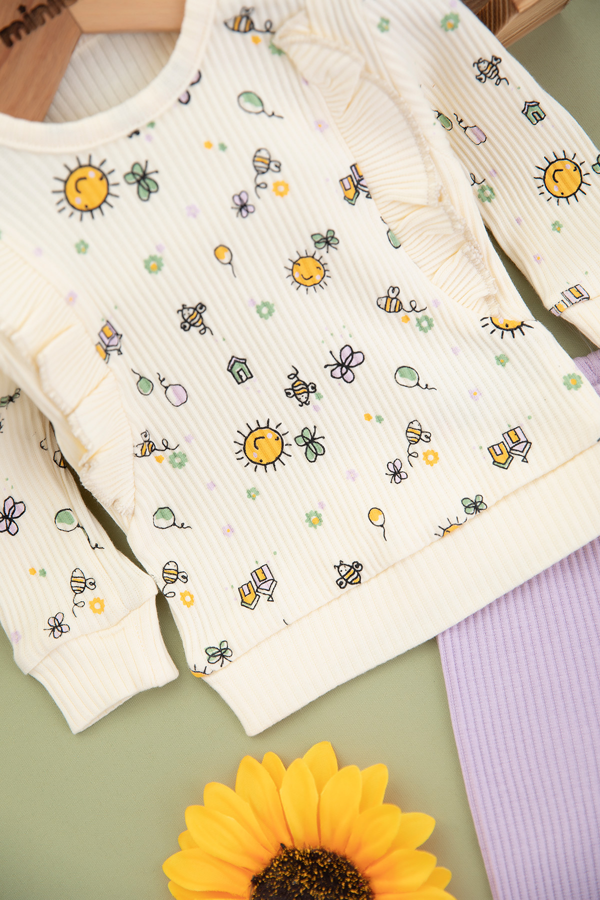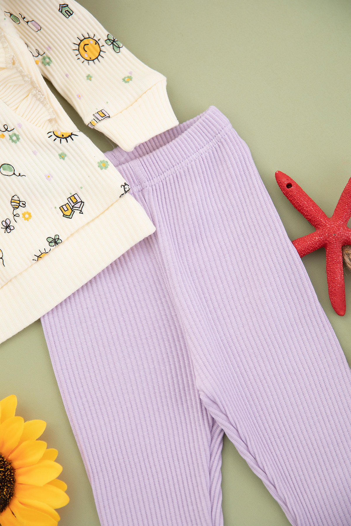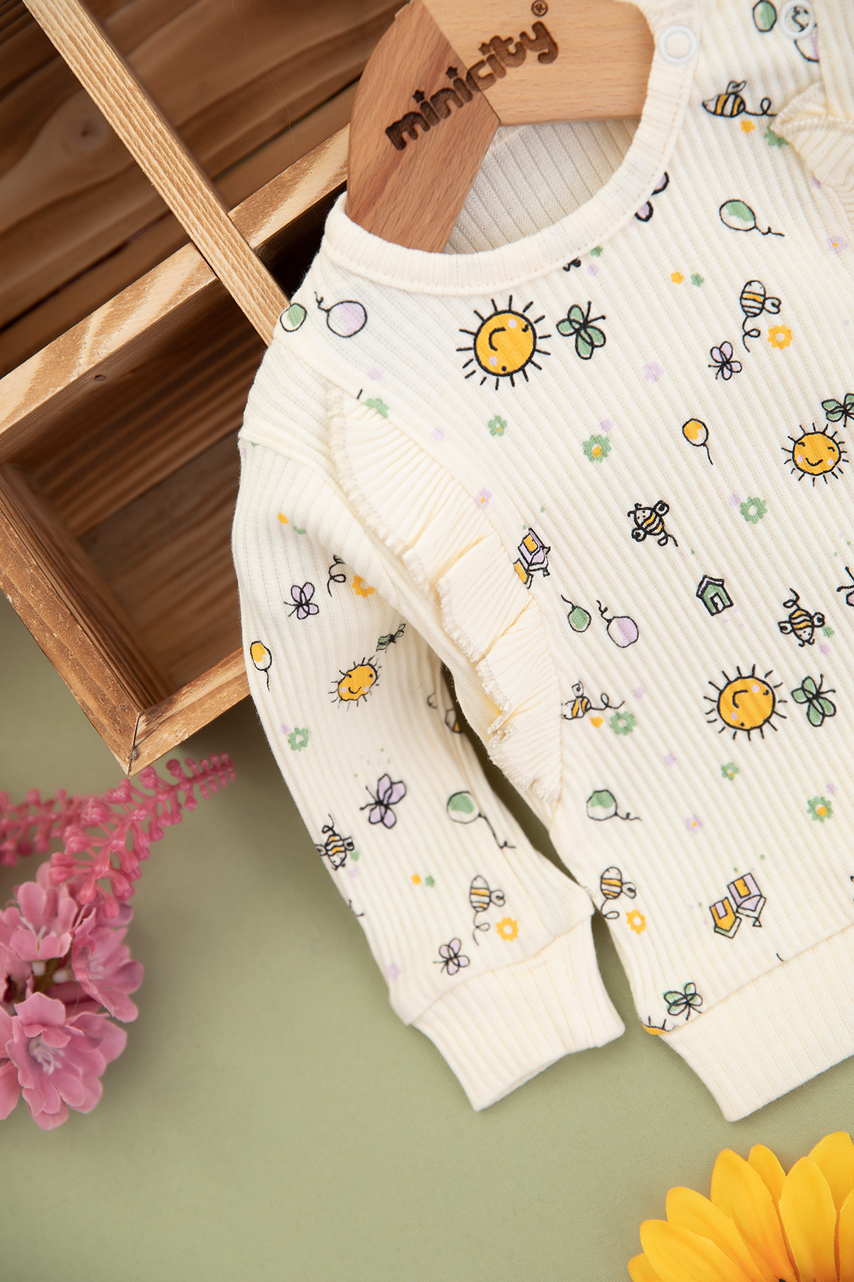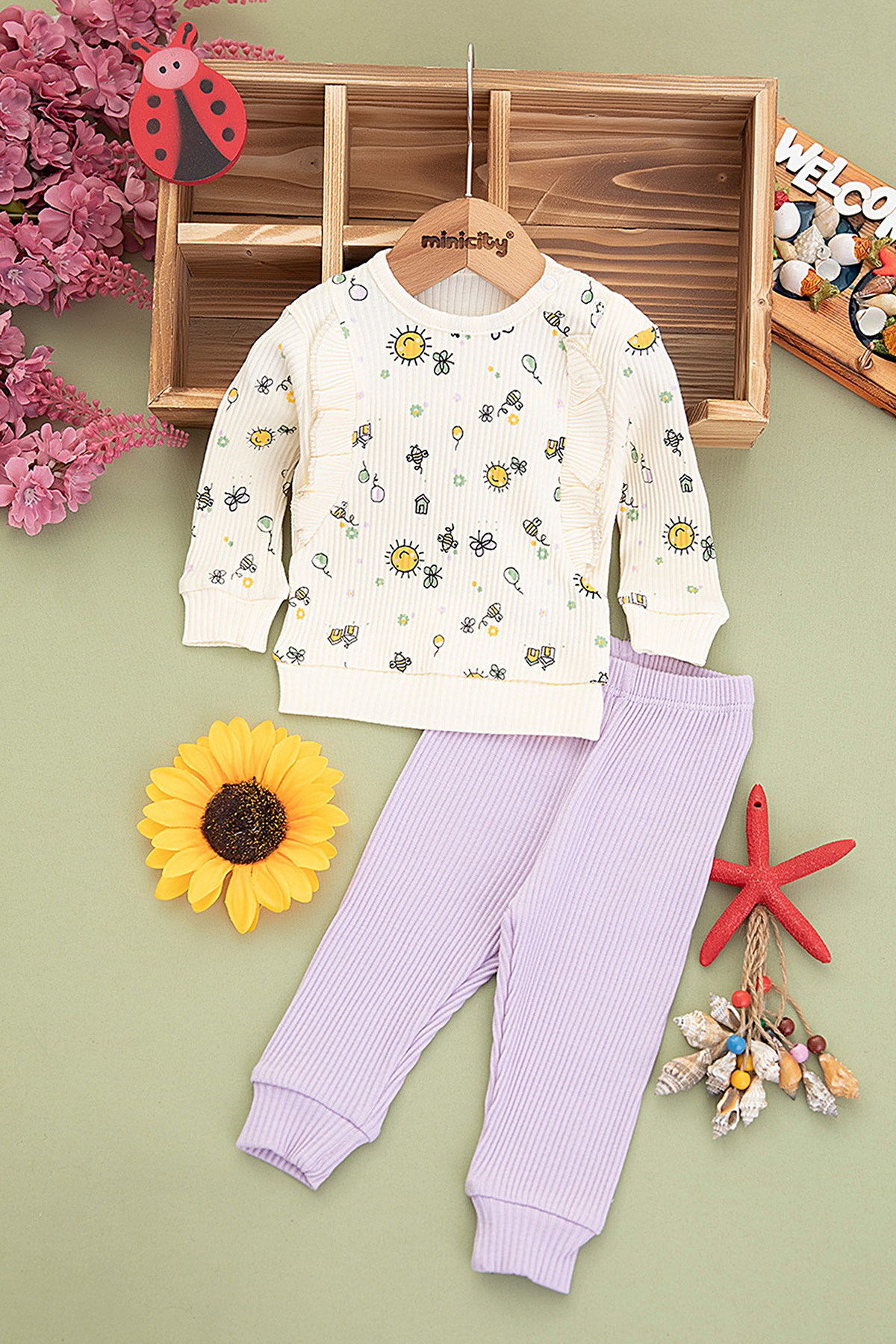 Kız Bebek Kelebek ve Güneş Baskılı Takm - 1260 (3-12 Ay)