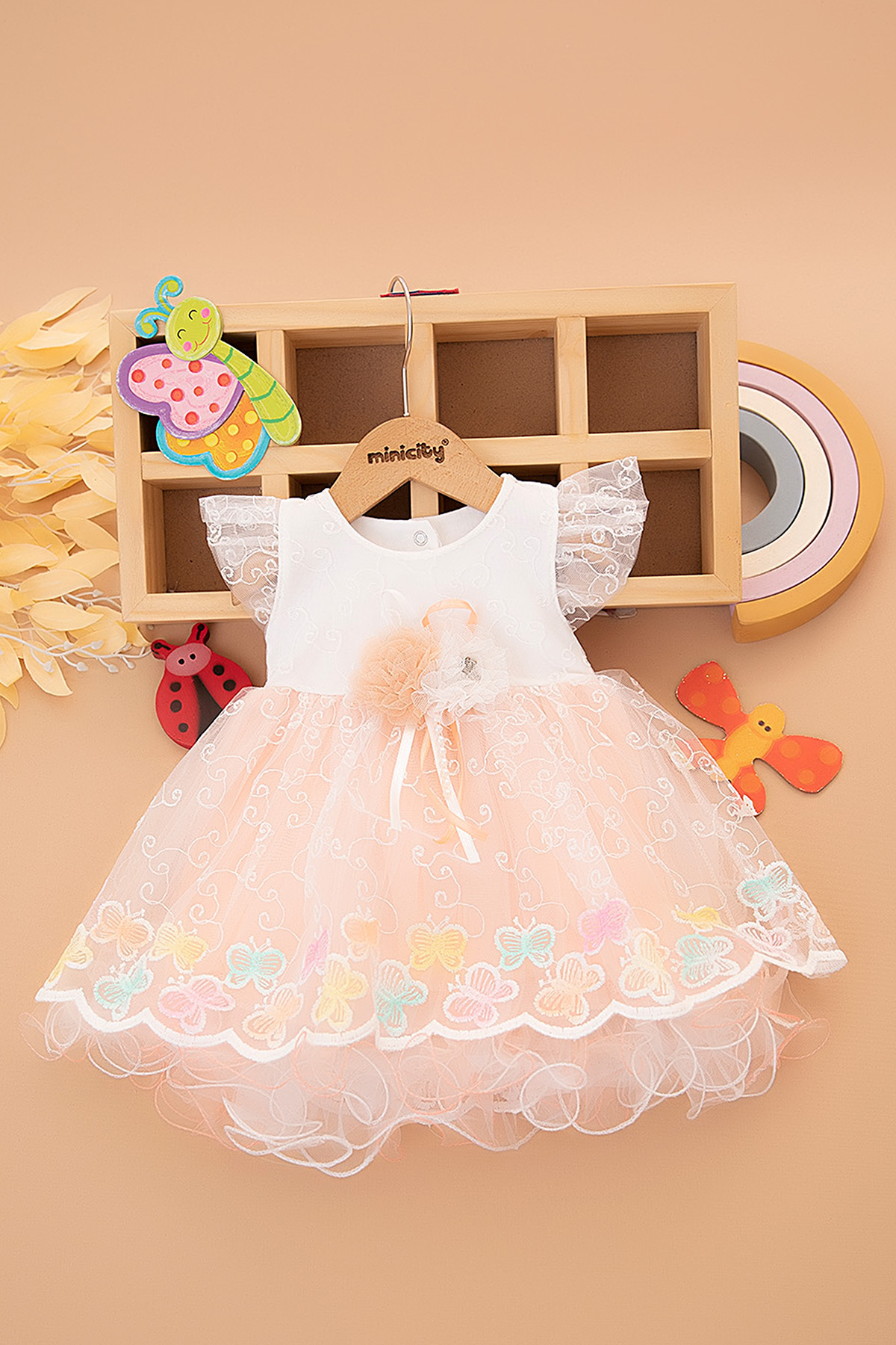 Kız Bebek Kelebekli Tüllü Kısa Elbise - 1643 (9-18 Ay)