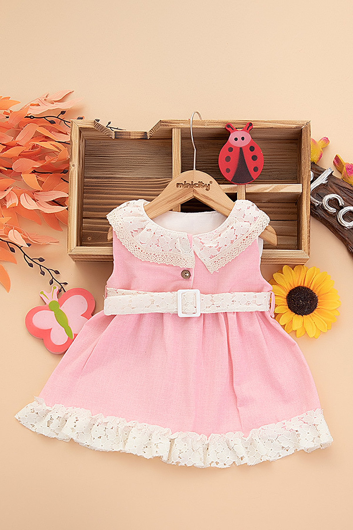 Kız Bebek Kemerli Dantelli Elbise - 1658 (9-24 Ay)