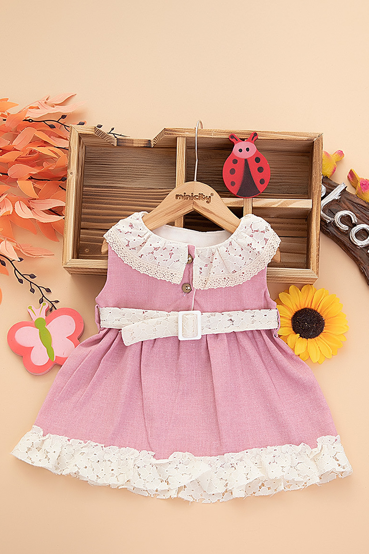 Kız Bebek Kemerli Dantelli Elbise - 1658 (9-24 Ay)