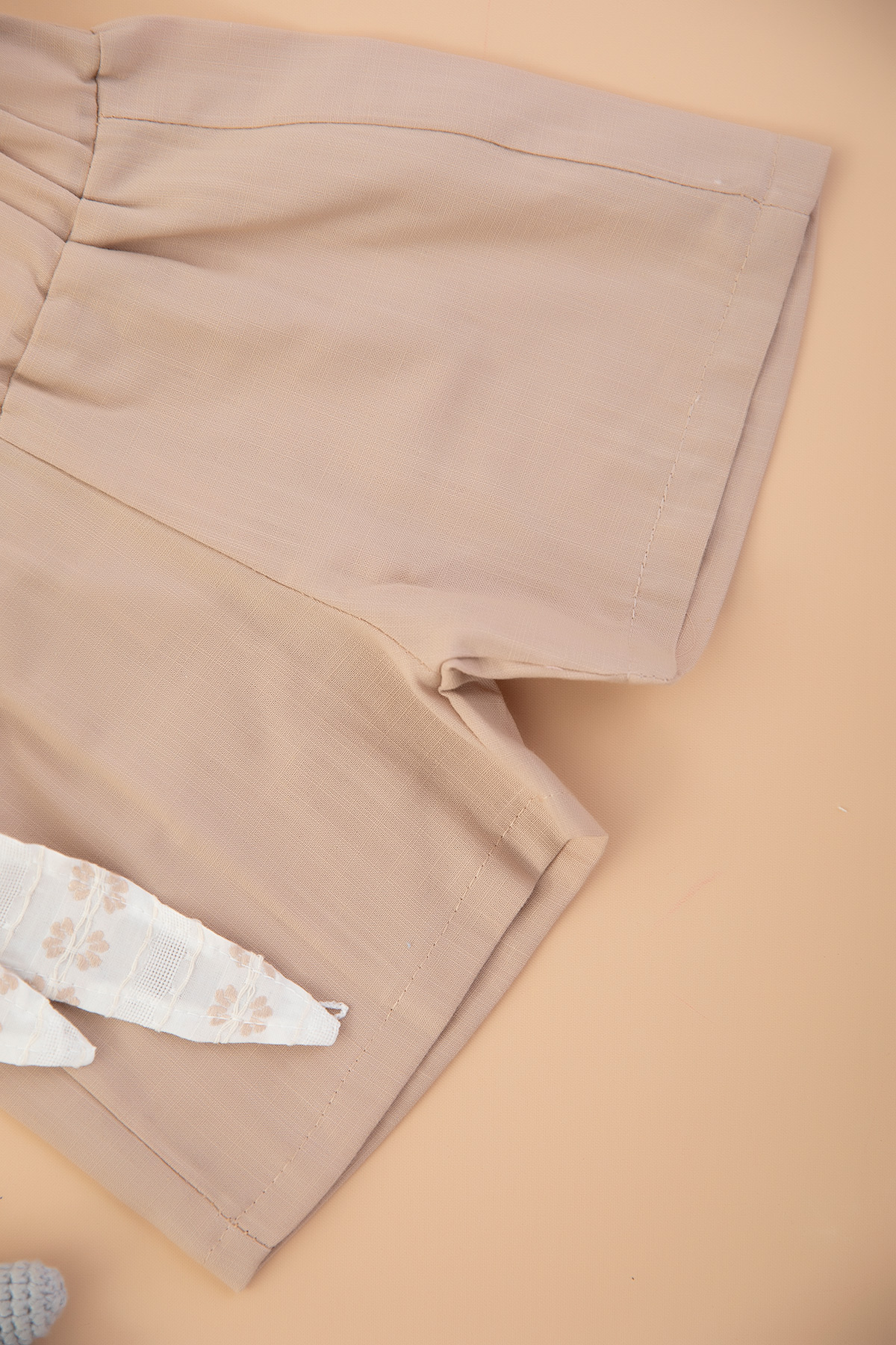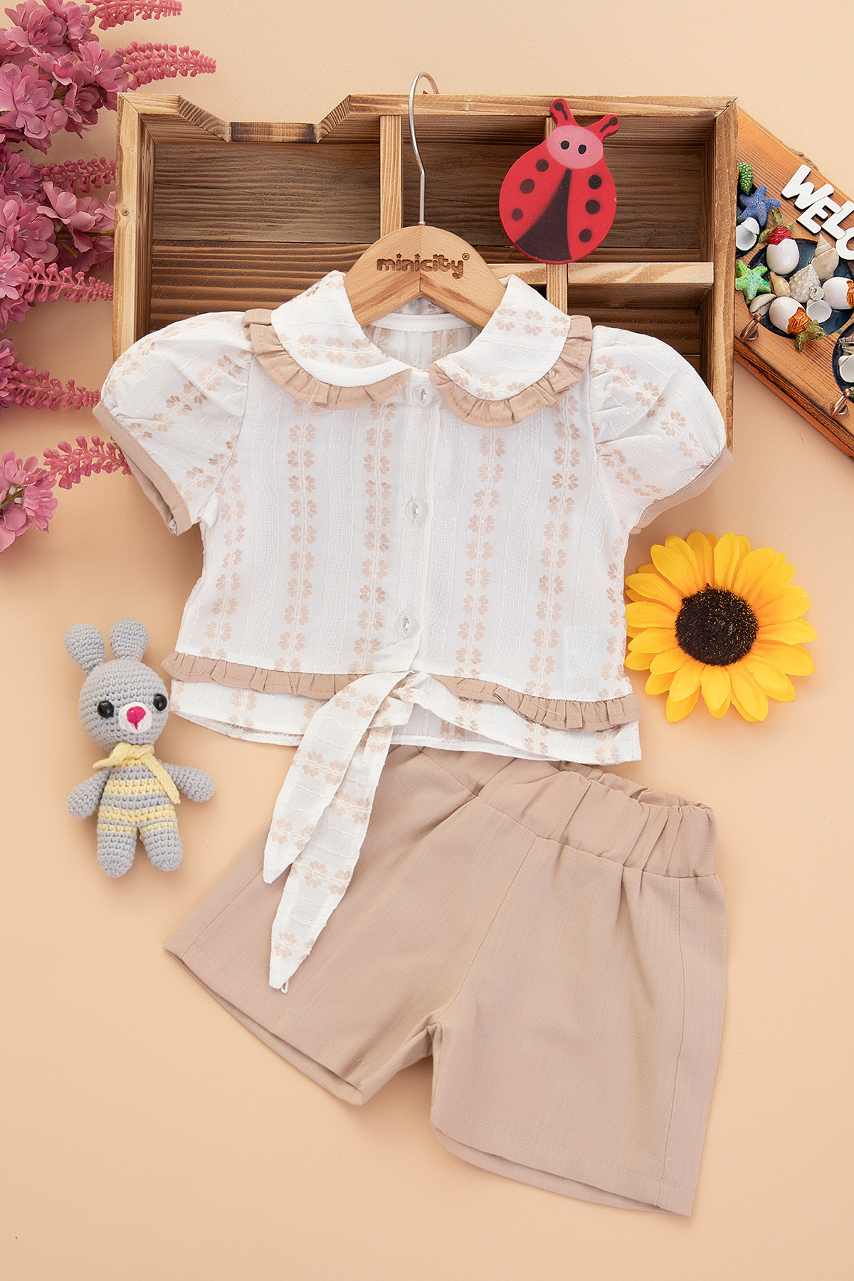 Kız Bebek Keten Bağlamalı Şortlu Takım - 3174 (9-24 Ay)