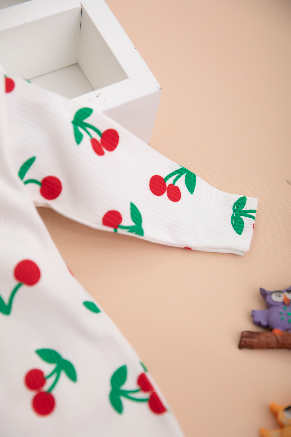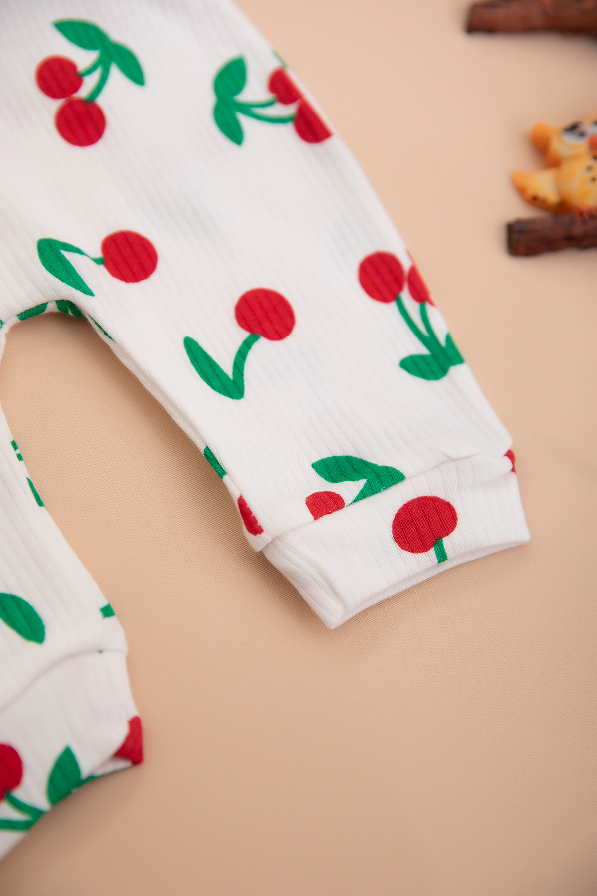 Kız Bebek Kiraz Baskılı Manşetli Tulum - 1872 (3-9 Ay)