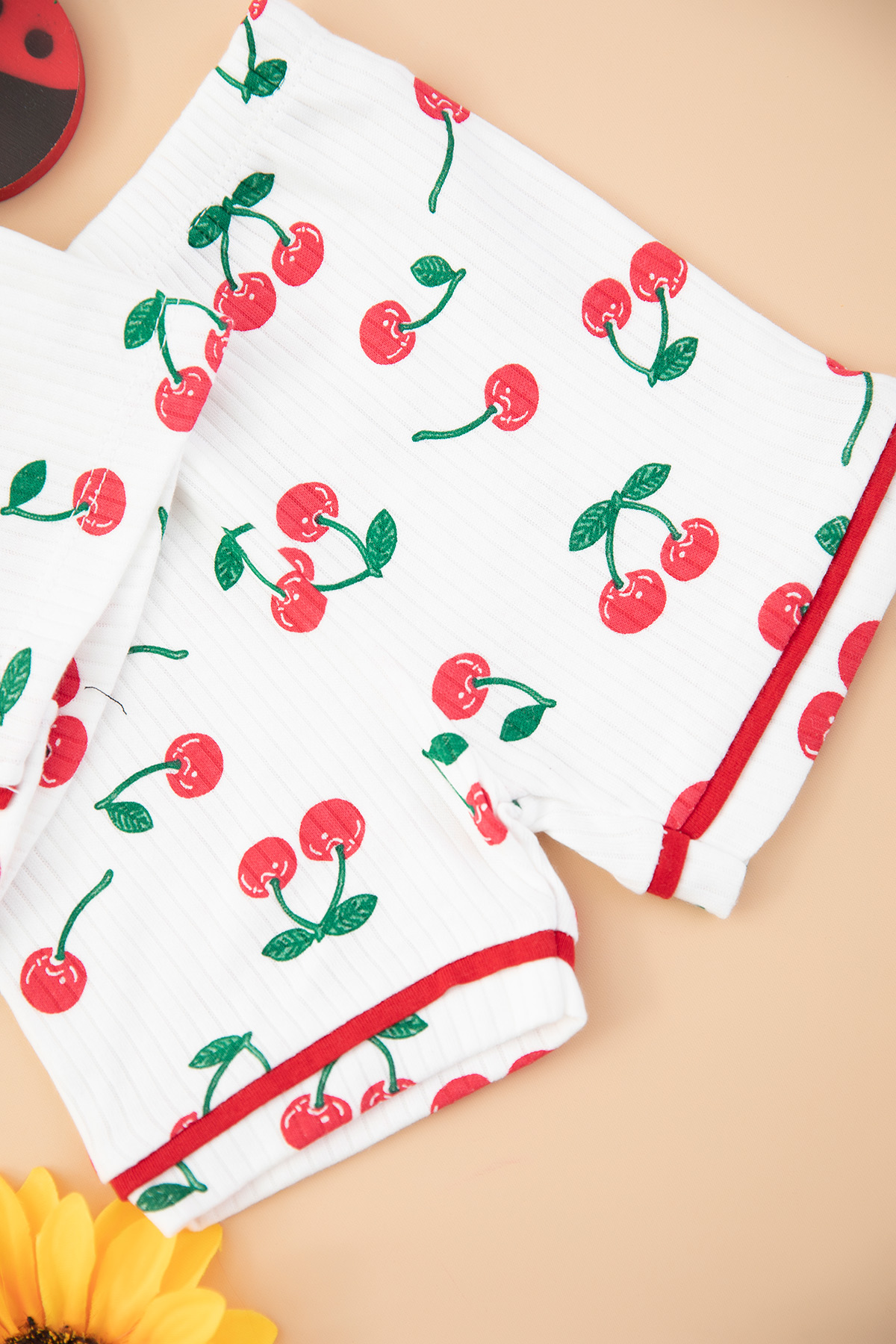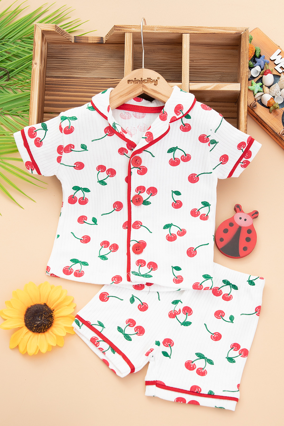 Kız Bebek Kiraz Baskılı Şortlu Pijama Takım - 8028 (6-24 Ay)