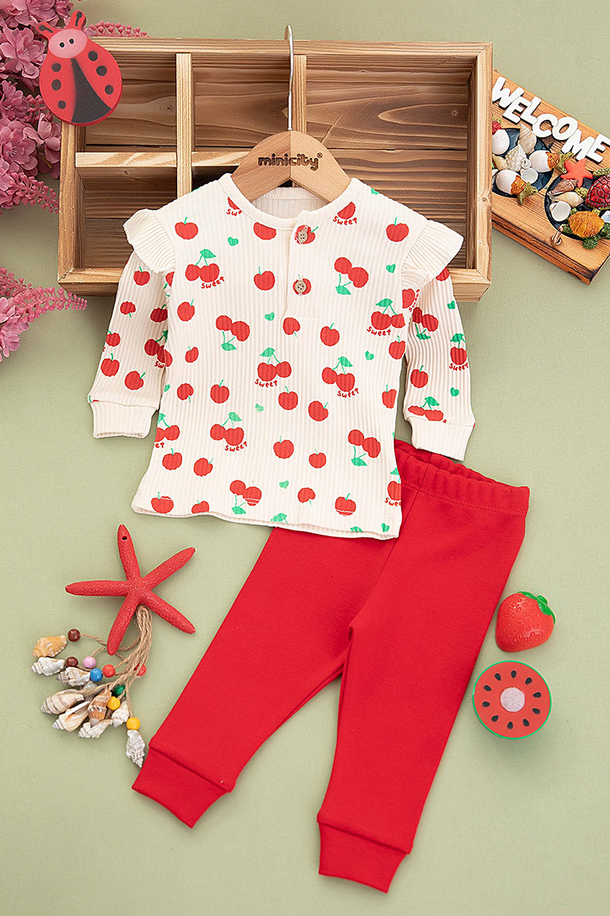 Kız Bebek Kiraz Baskılı Takım - 1270 (3-12 Ay)