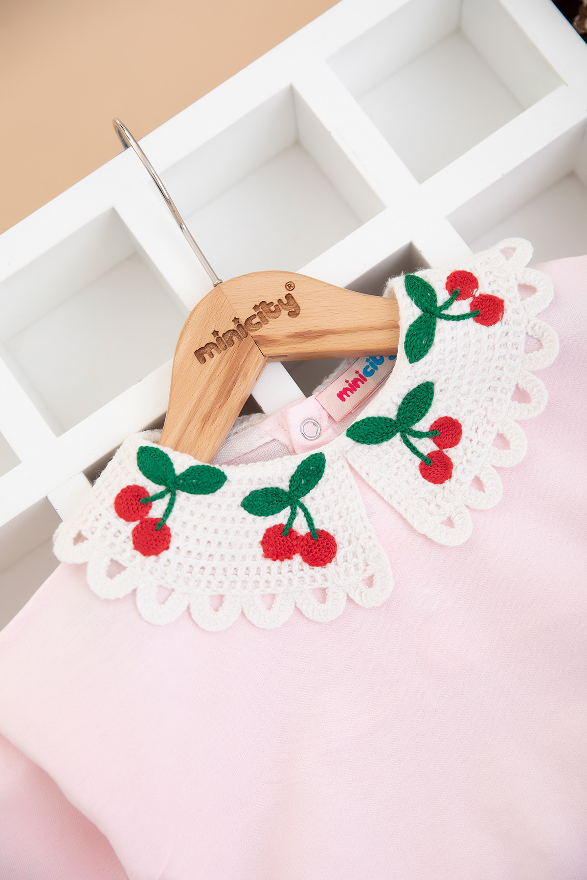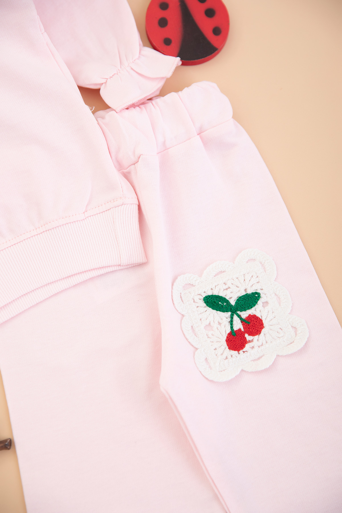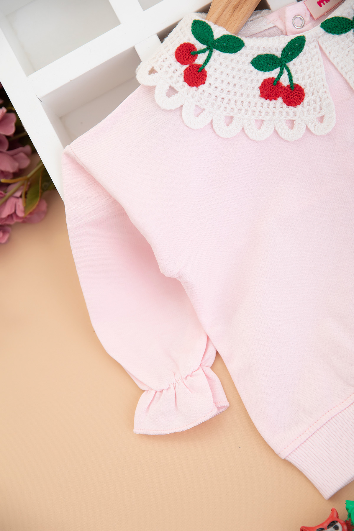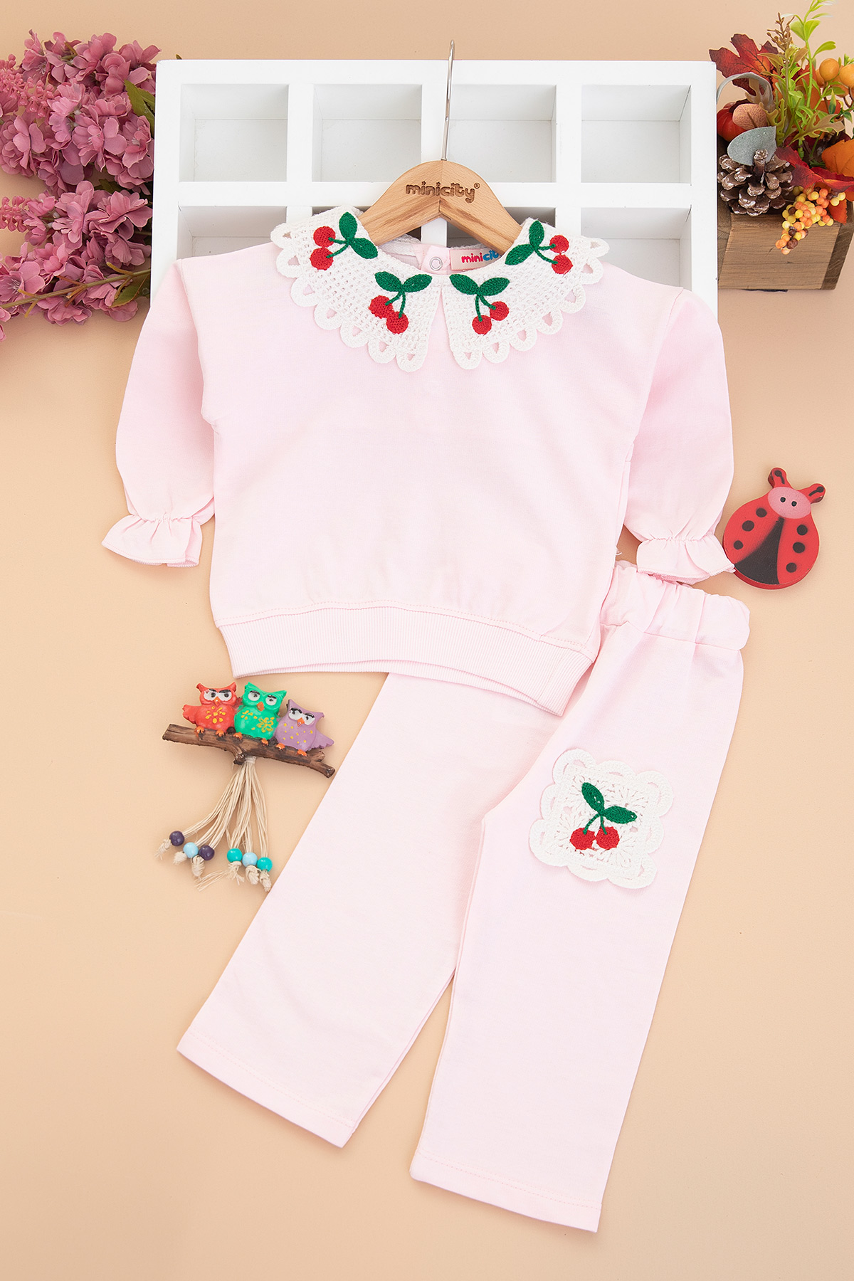 Kız Bebek Kiraz Nakışlı Dantel Yaka Takım - 10378 (9-24 Ay)
