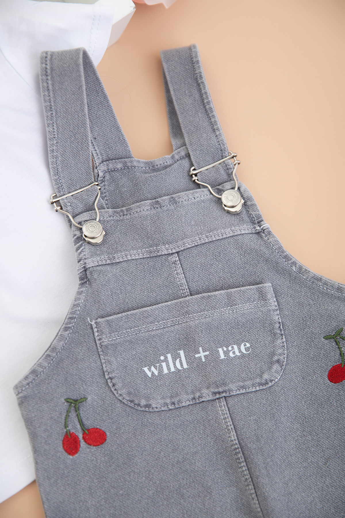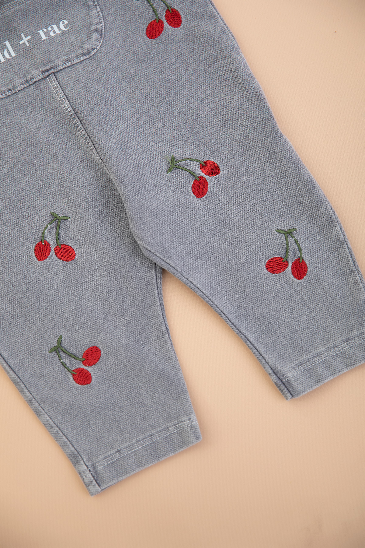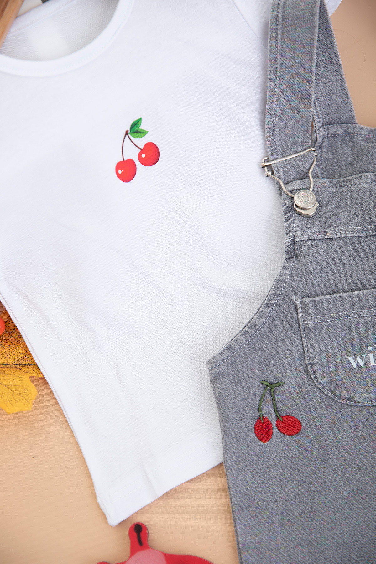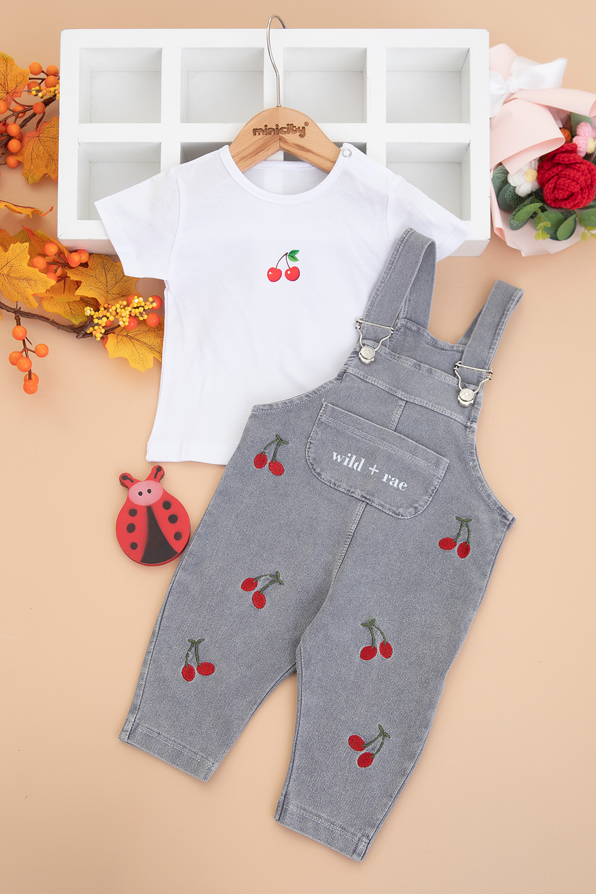 Kız Bebek Kiraz Nakışlı Kot Salopet - 0281 (9-24 Ay)