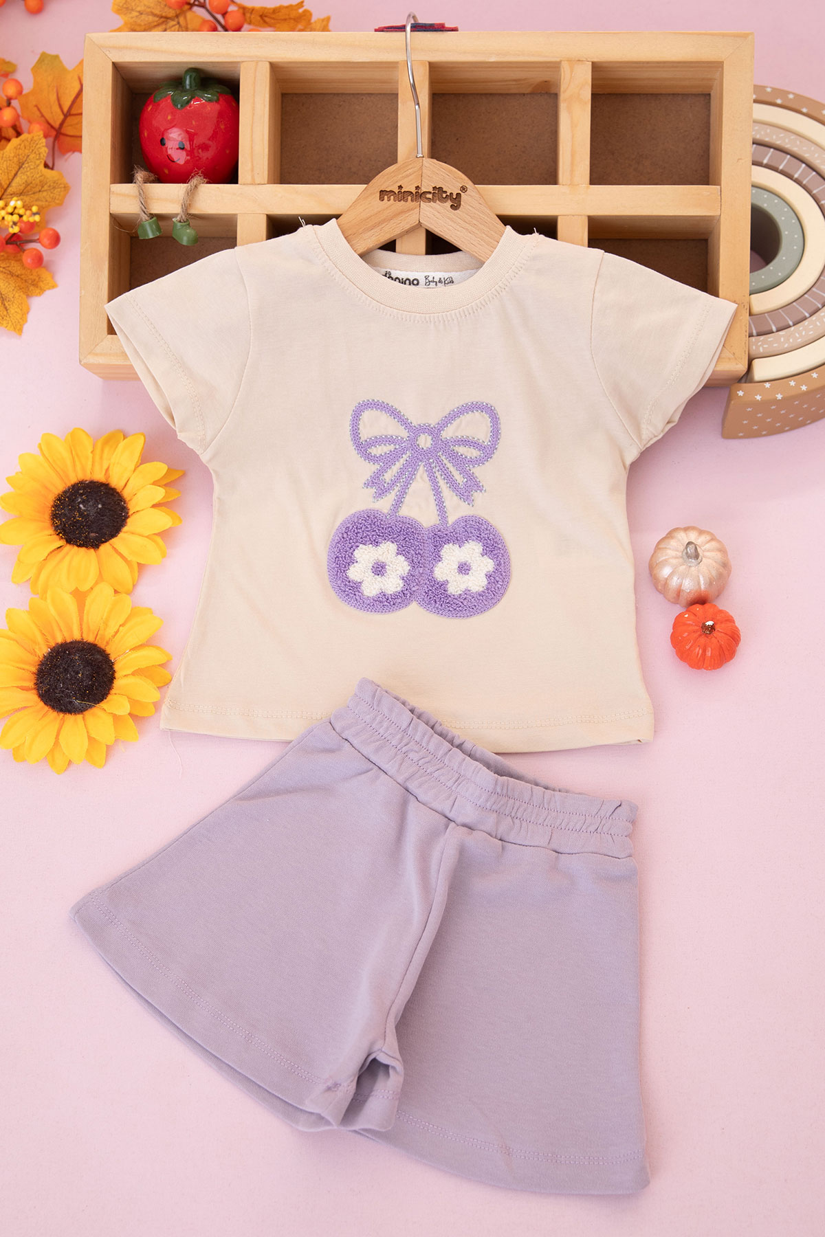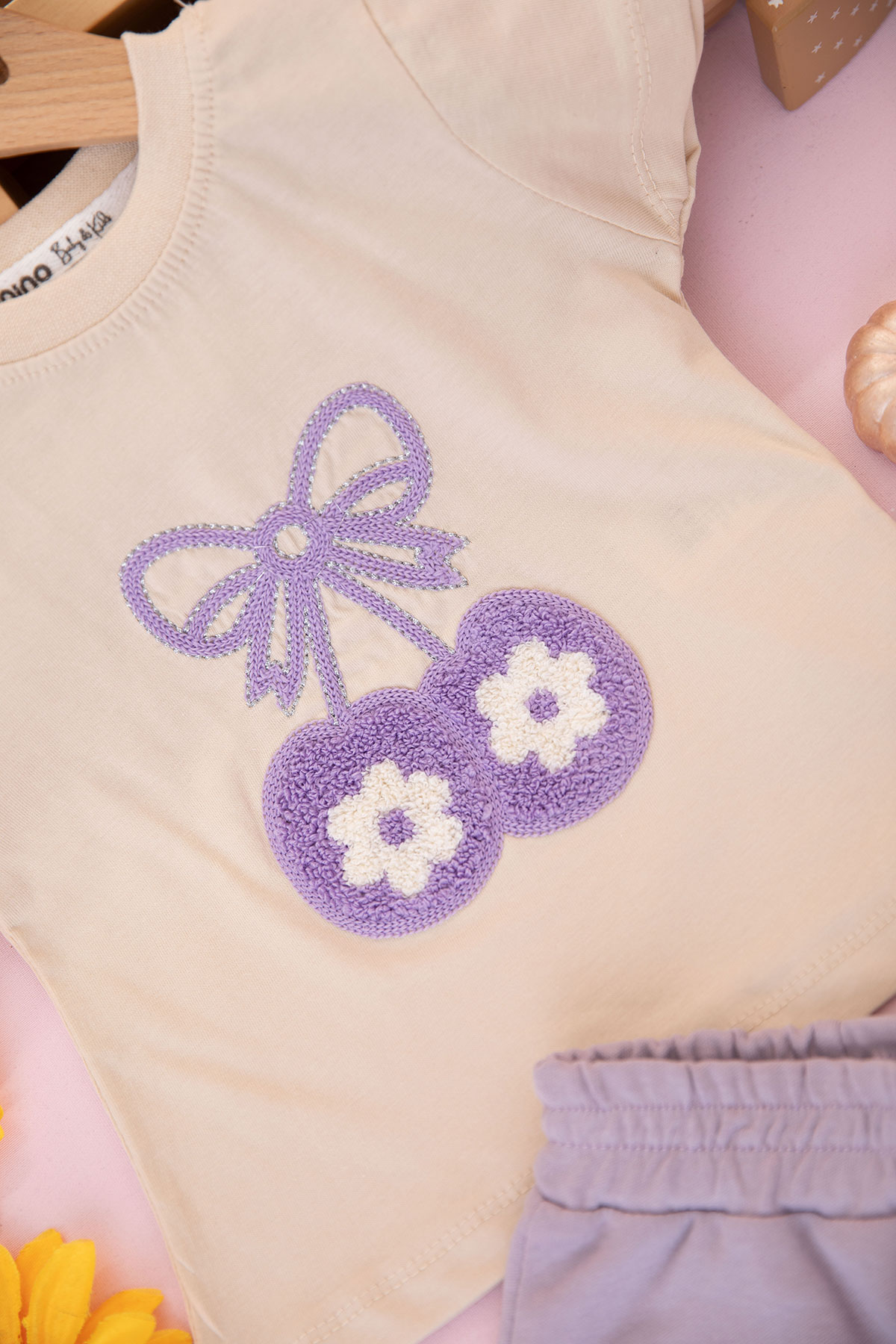 Kız Bebek Kiraz Nakışlı Şortlu Takım - 40904 (6-24 Ay)