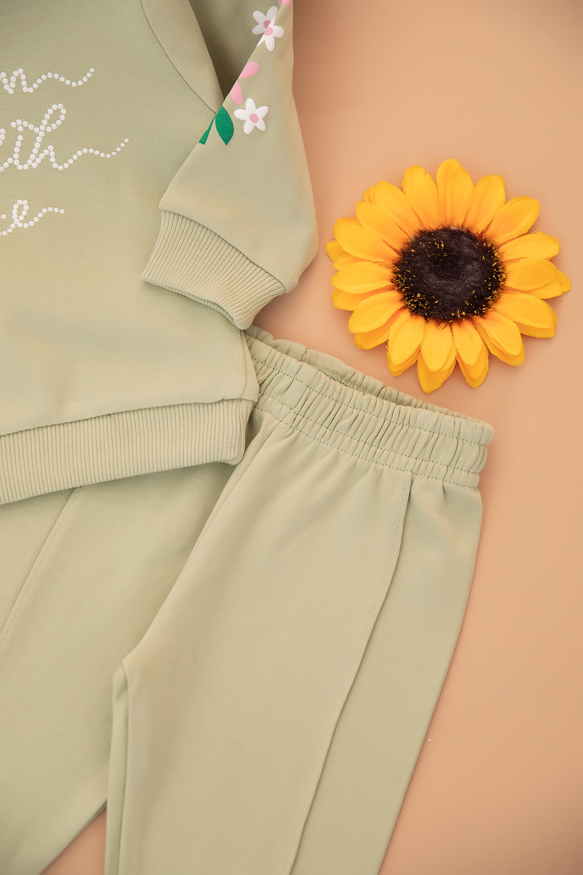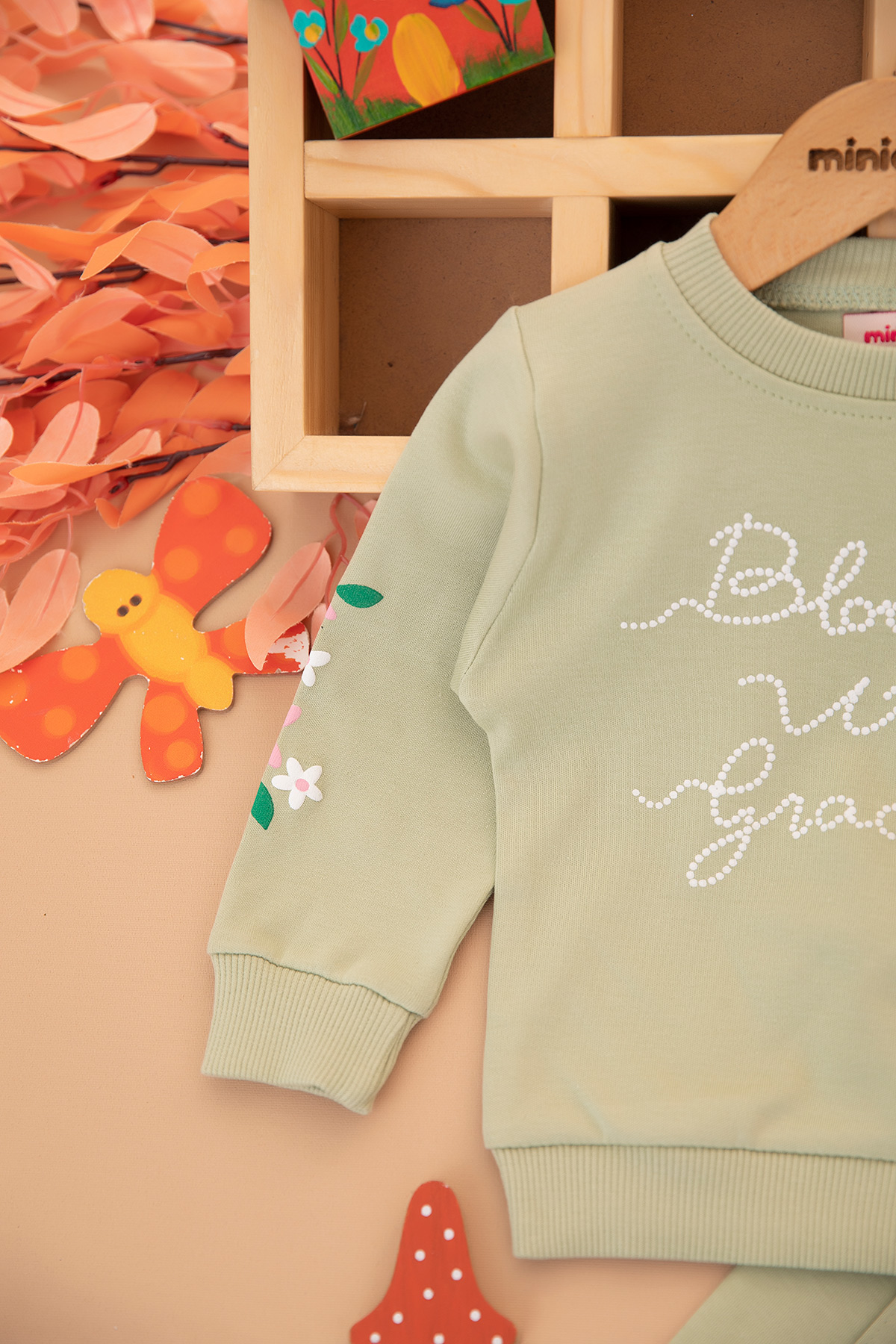 Kız Bebek Kolları Çiçek Baskılı Takım - 25716 (9-24 Ay)