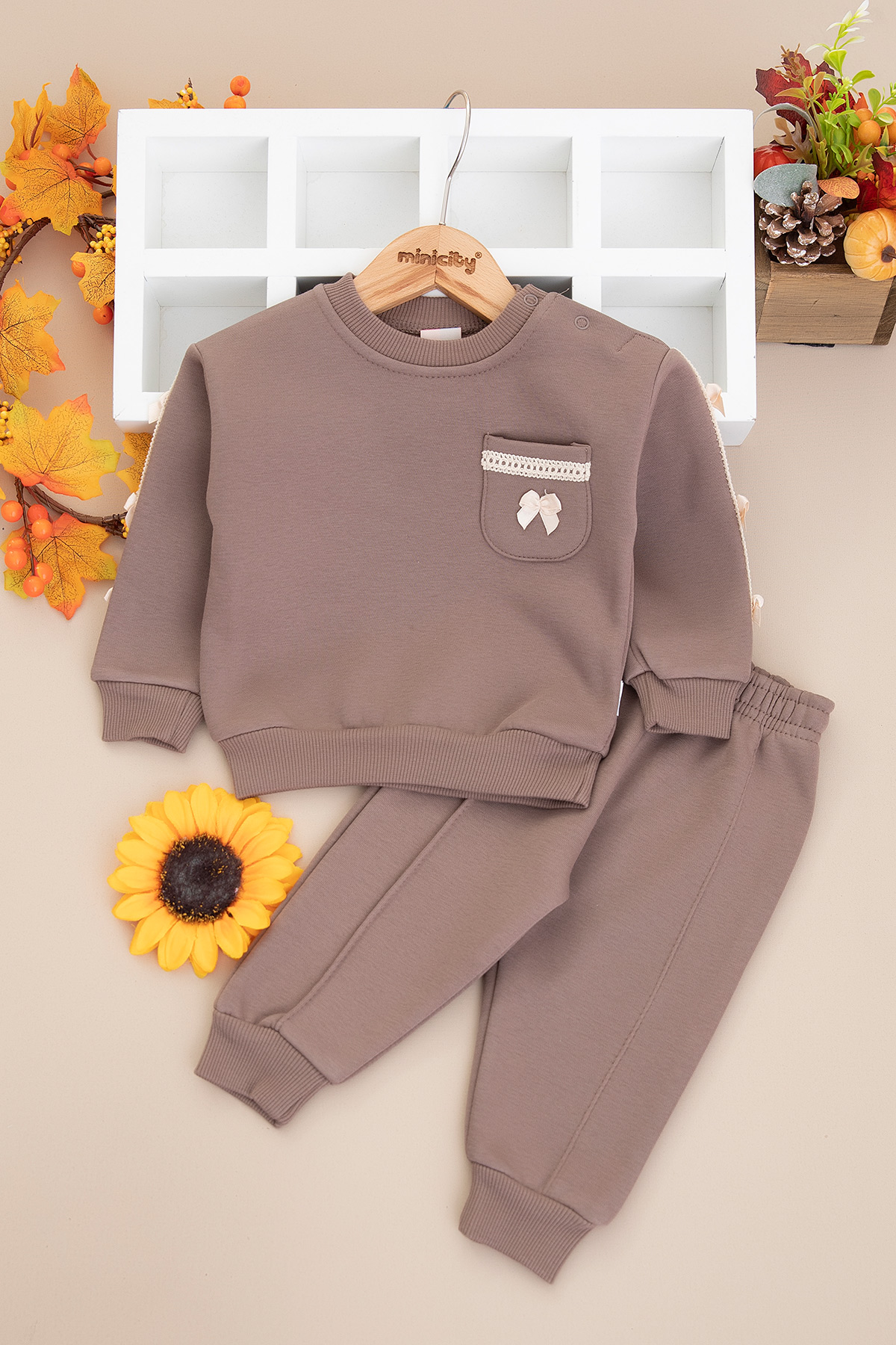 Kız Bebek Kolu Dantelli Üçip Takım - 25902 (9-24 Ay)