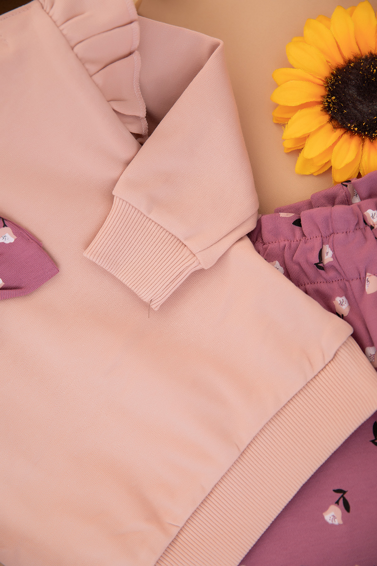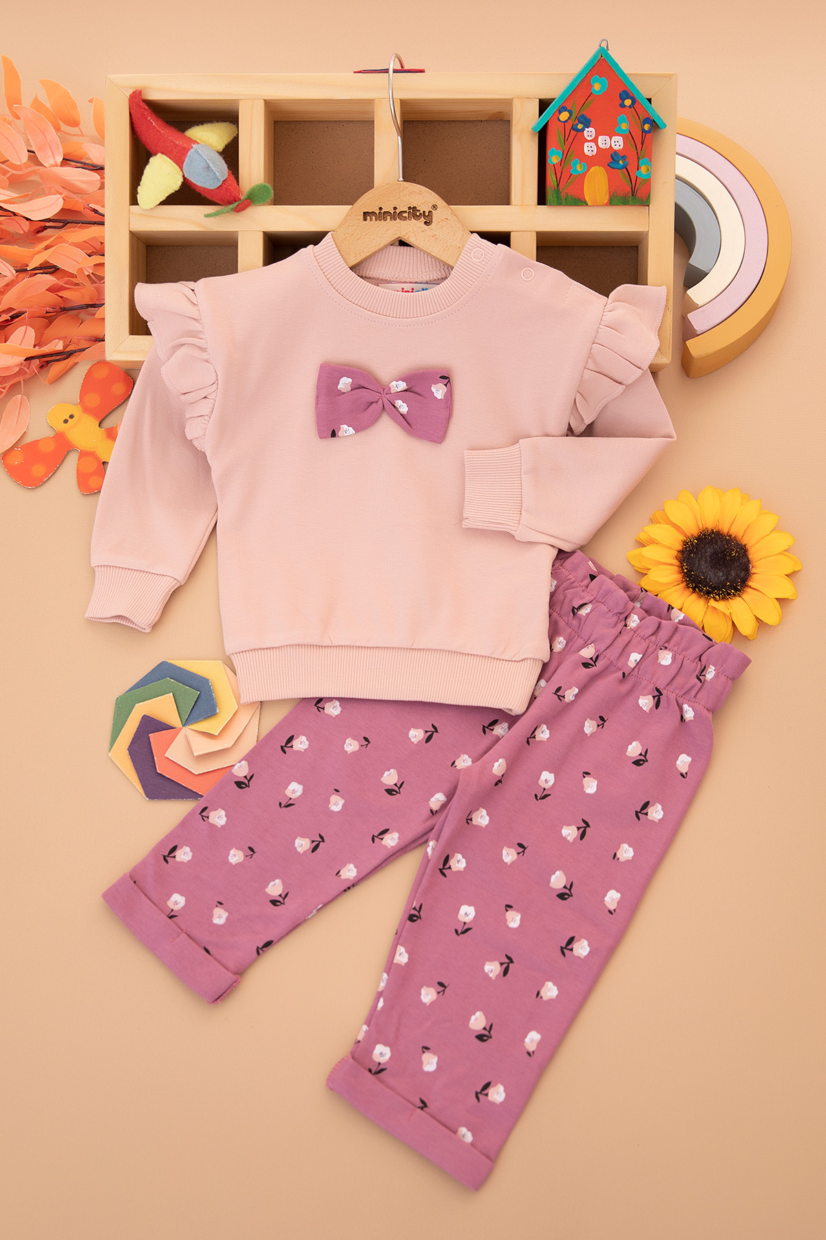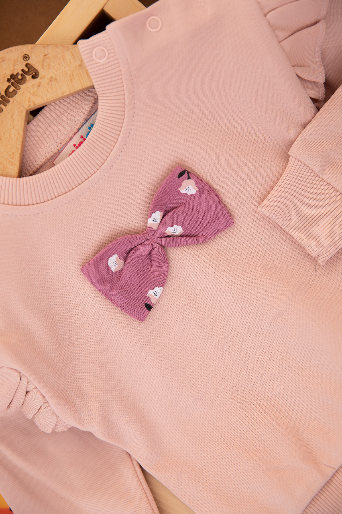Kız Bebek Kolu Fırfırlı Fiyonklu Takım - 25798 (9-24 Ay)