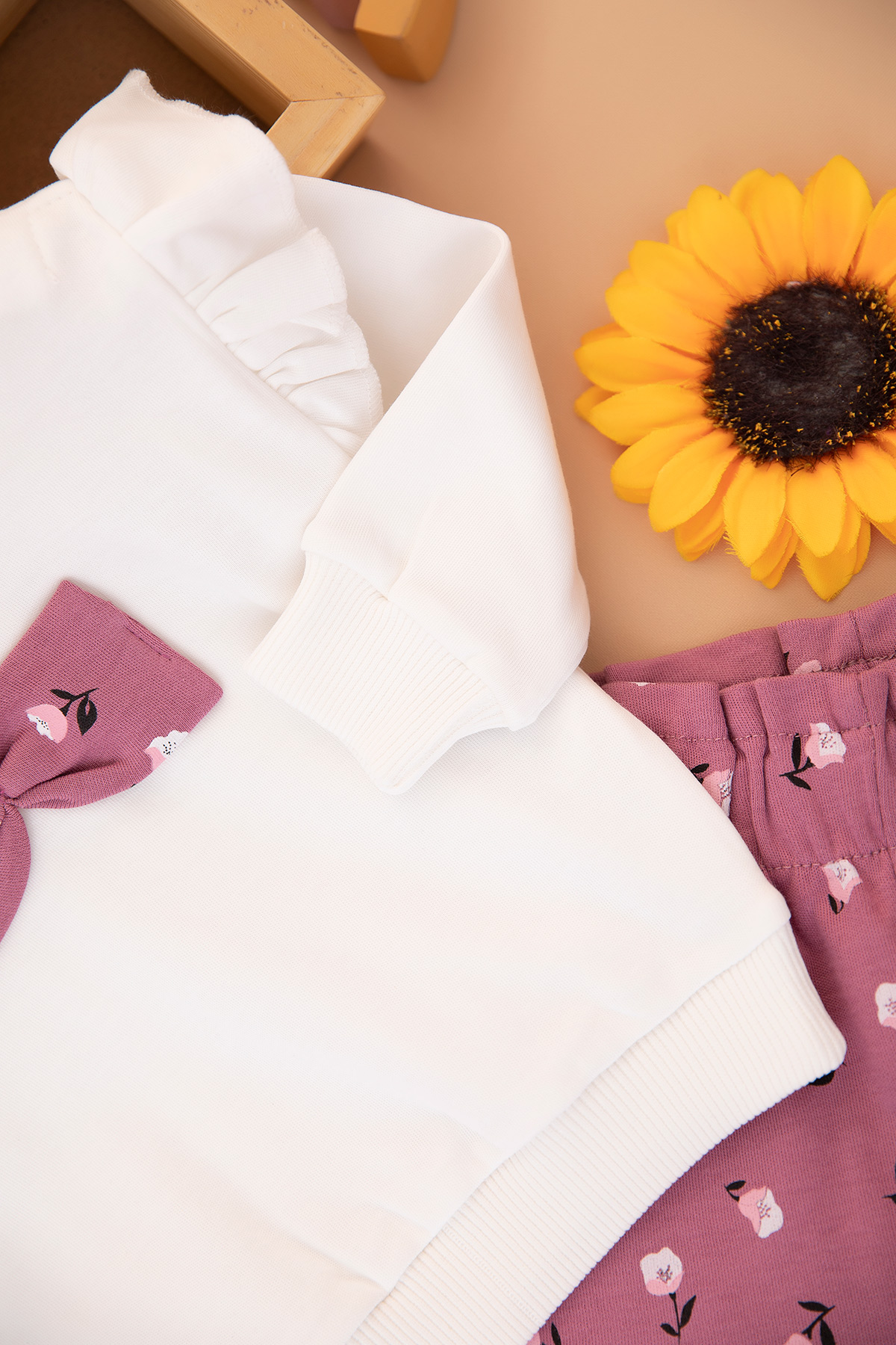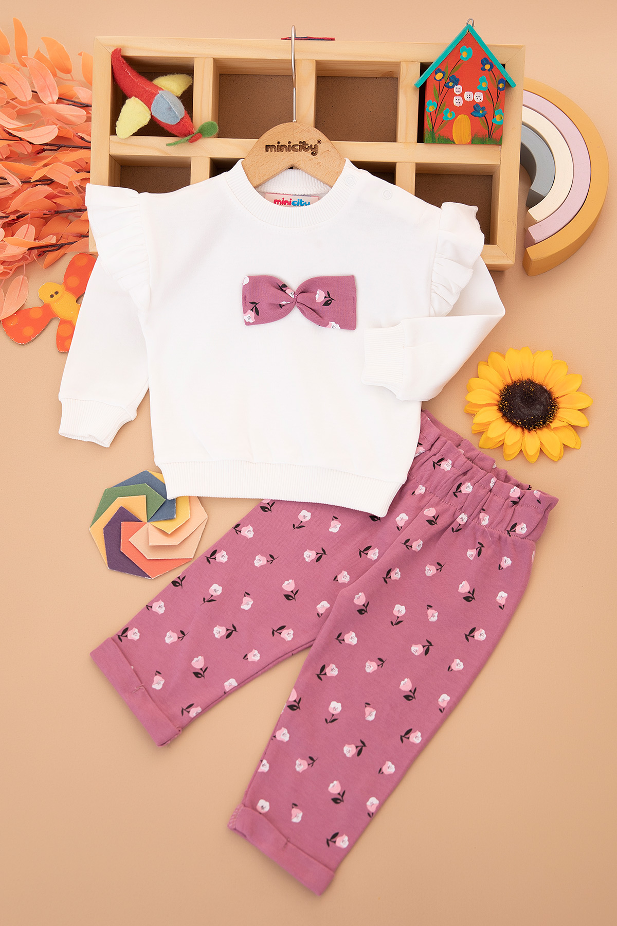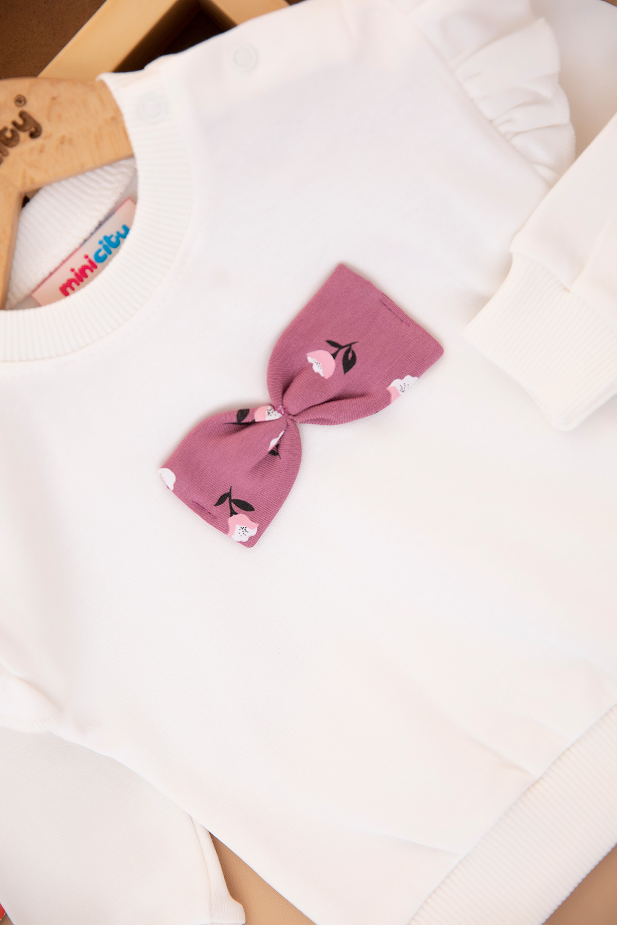 Kız Bebek Kolu Fırfırlı Fiyonklu Takım - 25798 (9-24 Ay)