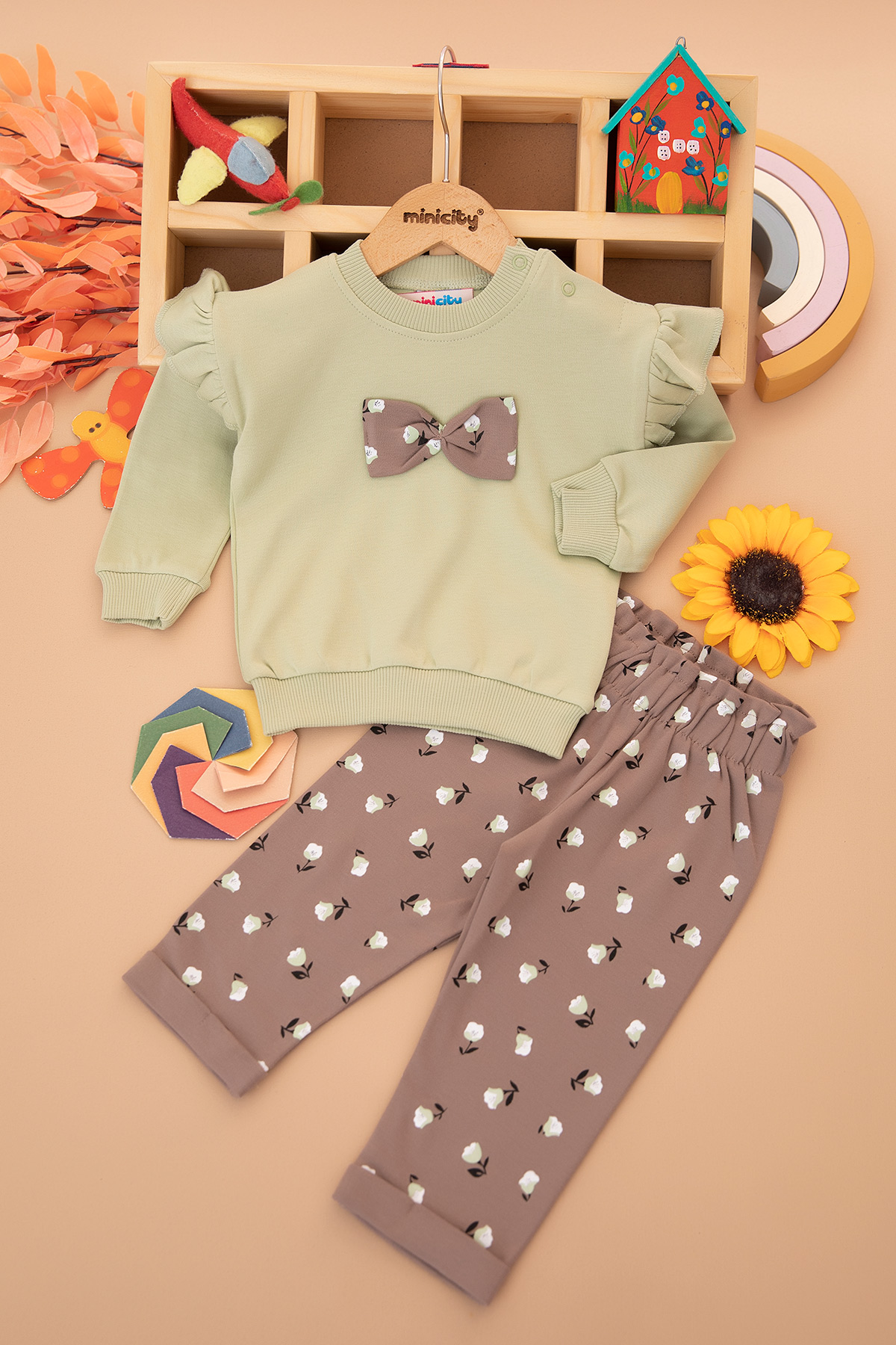 Kız Bebek Kolu Fırfırlı Fiyonklu Takım - 25798 (9-24 Ay)