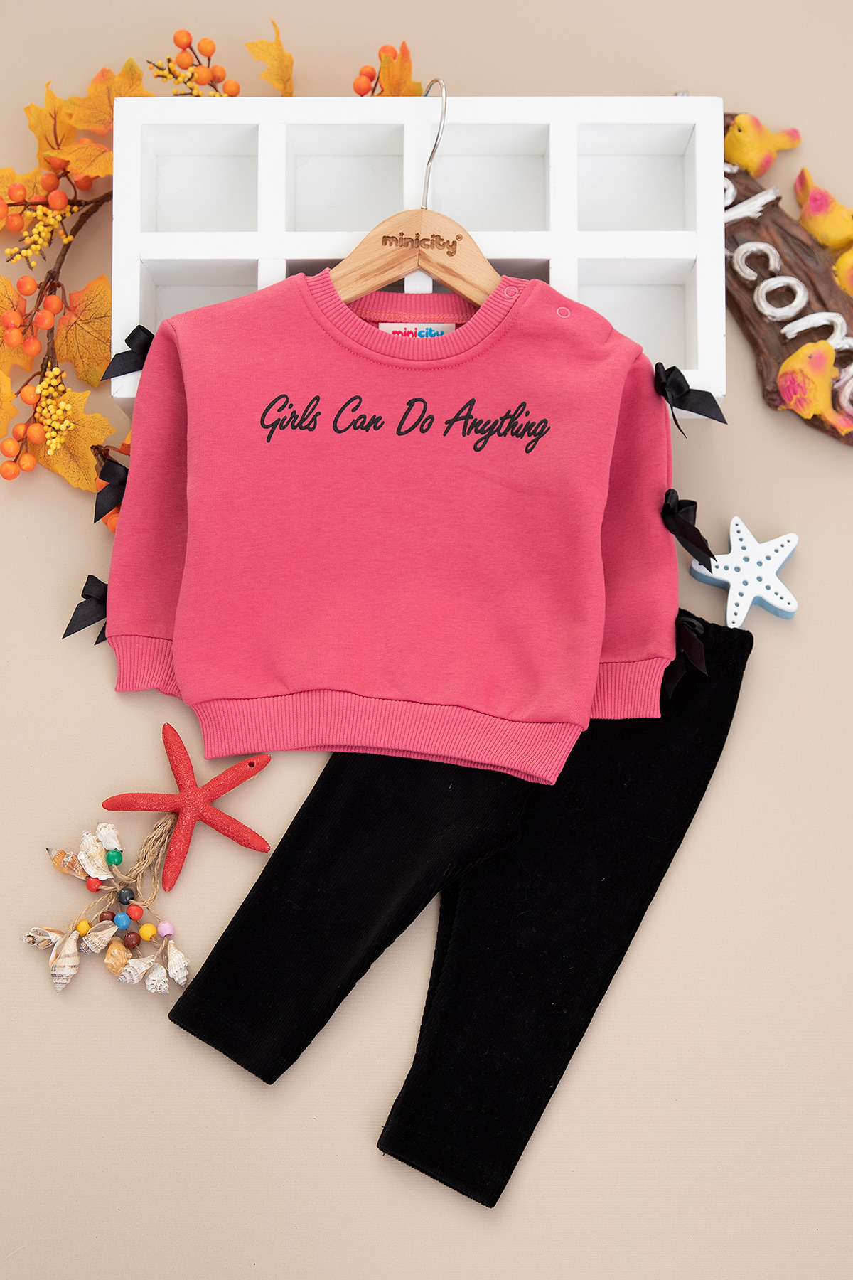 Kız Bebek Kolu Fiyonklu Üçip Takım - 25949 (9-24 Ay)