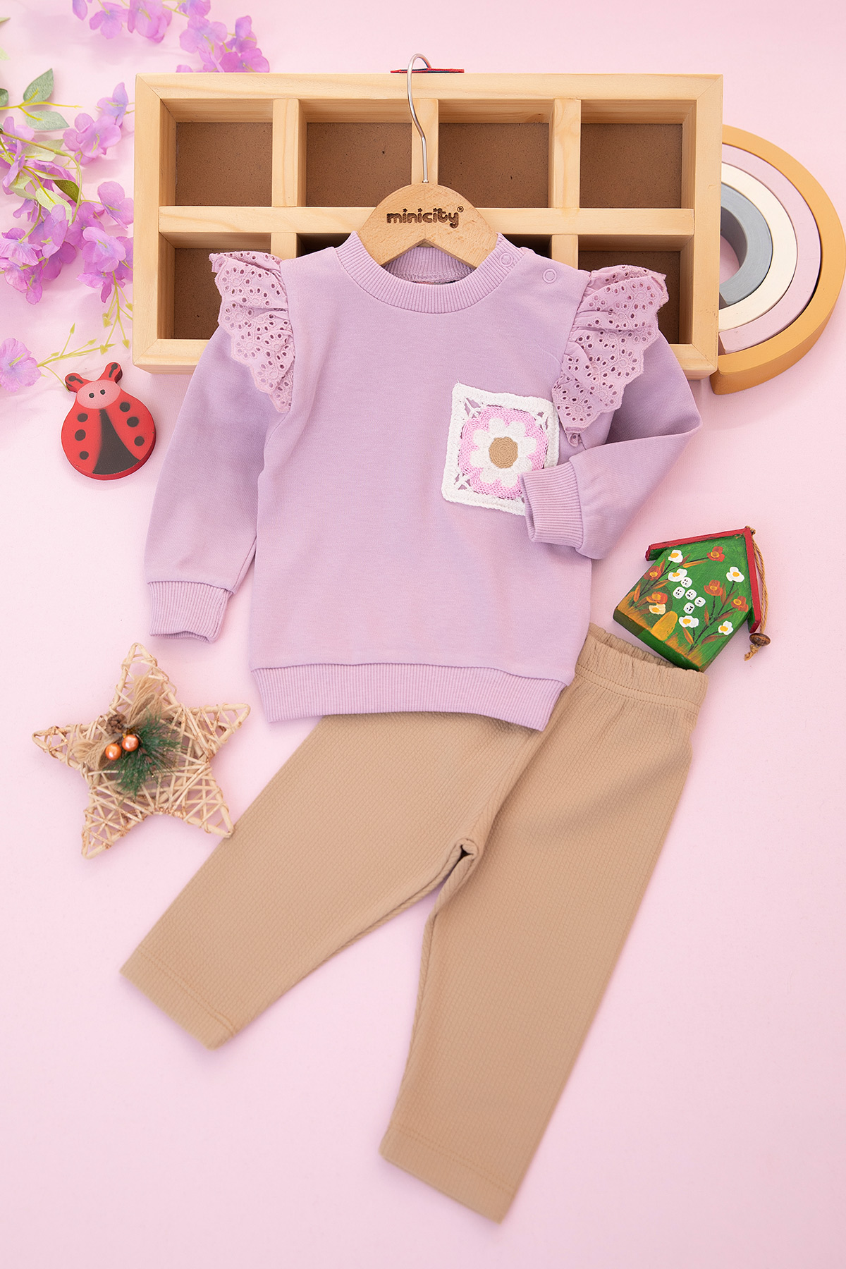 Kız Bebek Kolu Güpürlü Takım - 24594 (9-24 Ay)