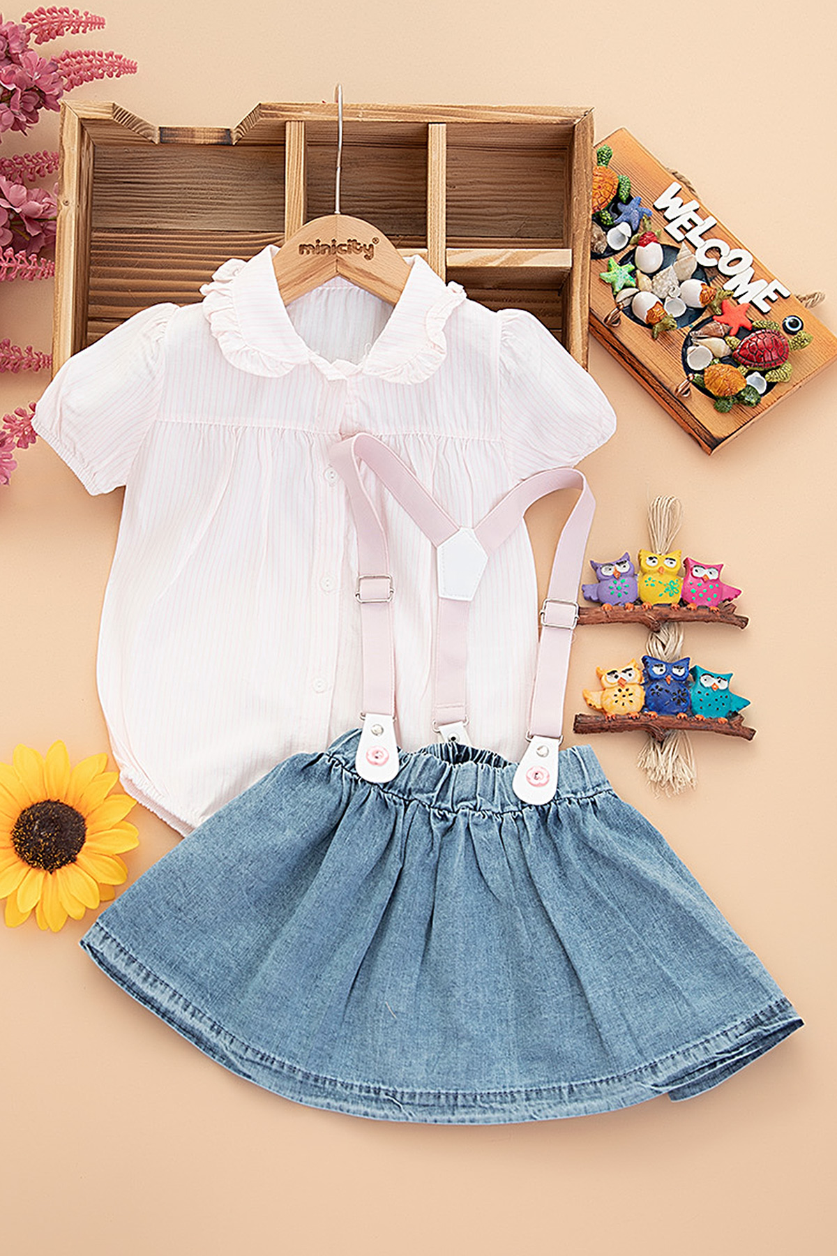 Kız Bebek Kot Salopetli Takım - 242090 (6-24 Ay)