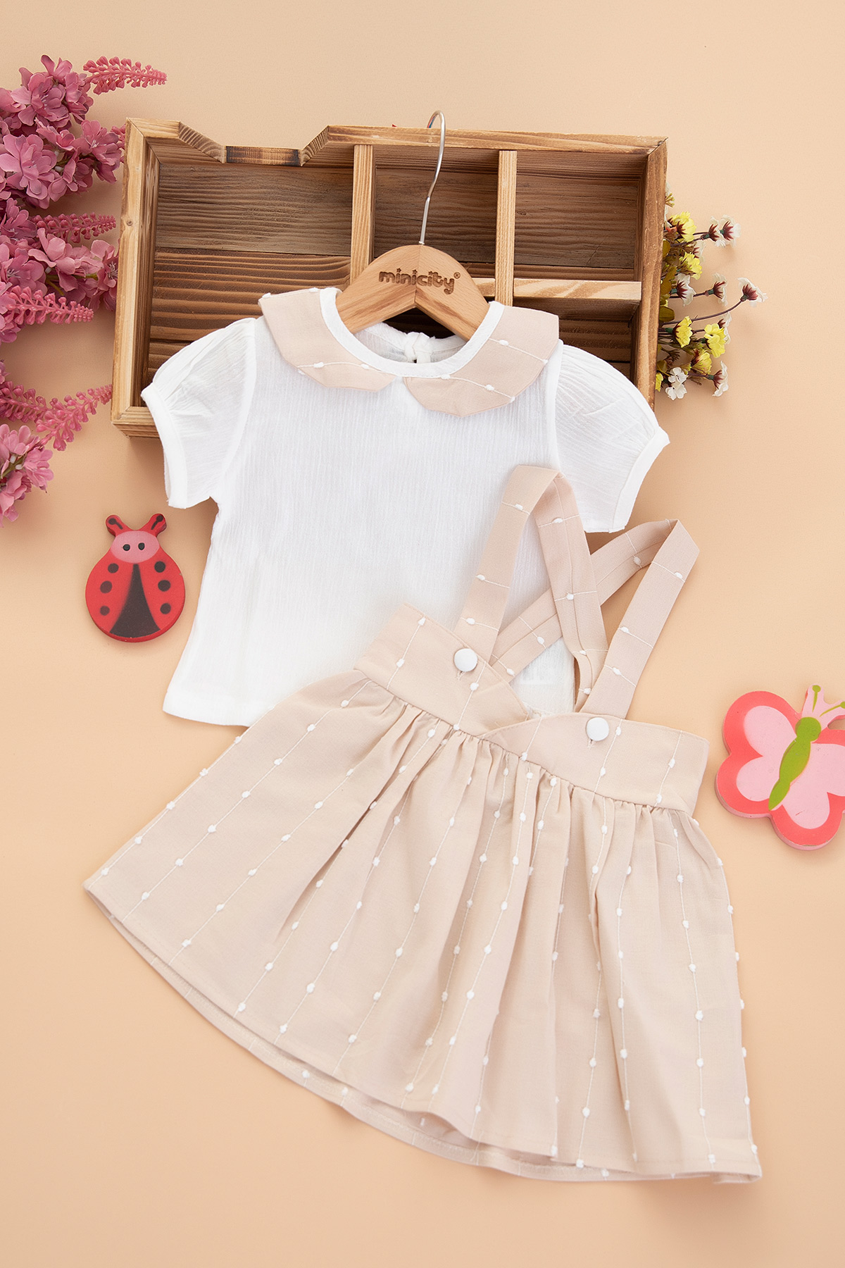 Kız Bebek Kruvaze Kemer Salopet Takım - 3170 (9-24 Ay)