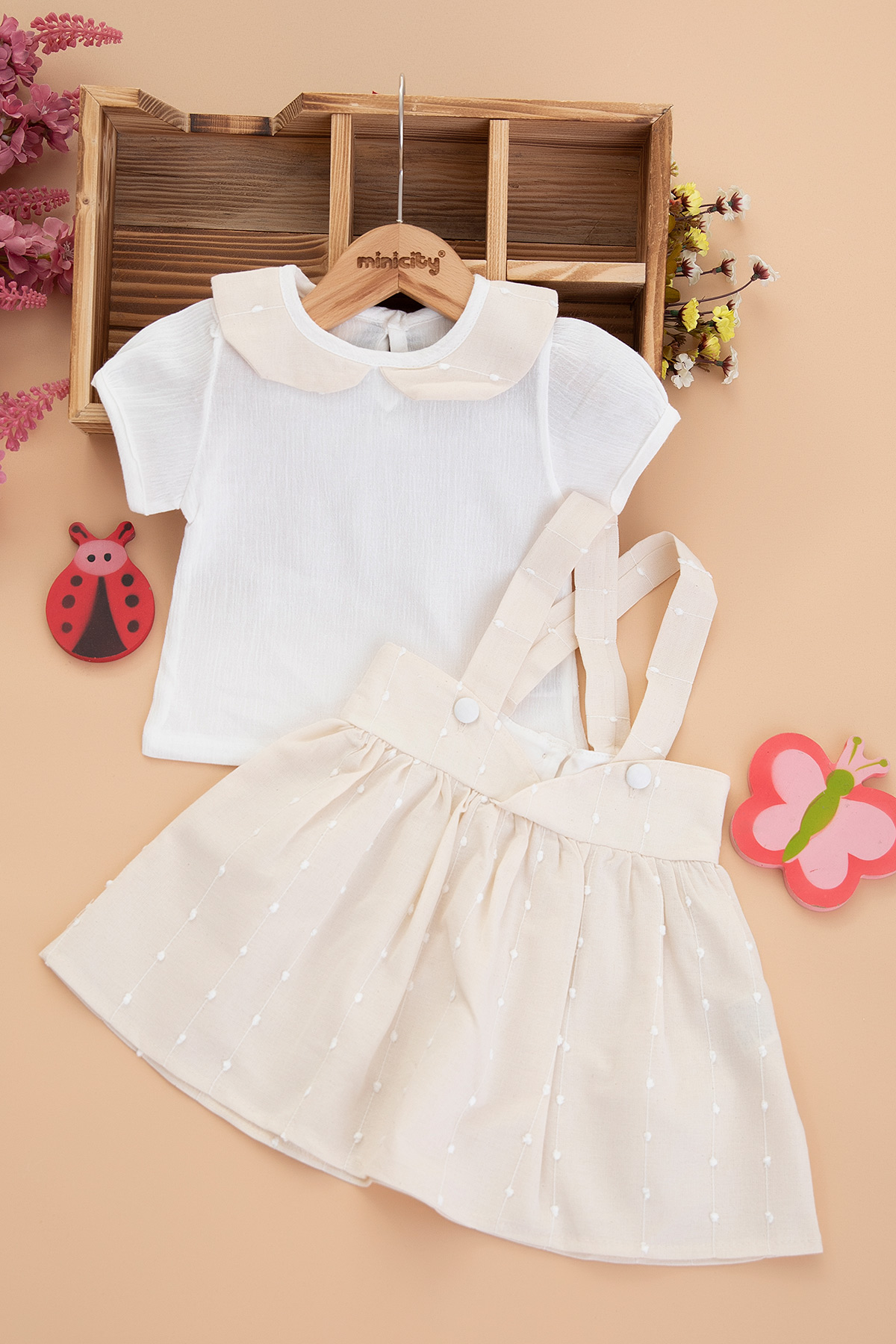Kız Bebek Kruvaze Kemer Salopet Takım - 3170 (9-24 Ay)