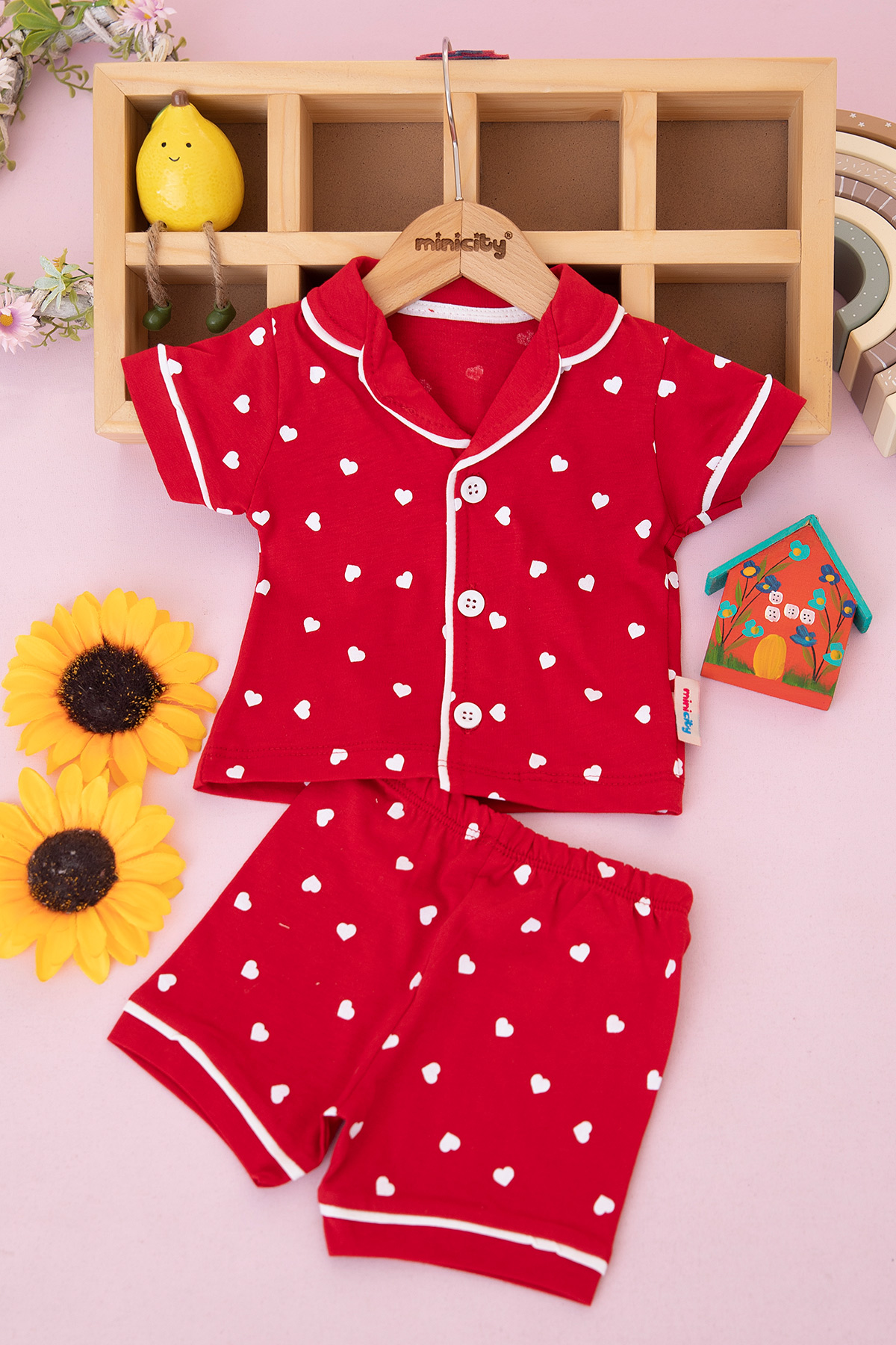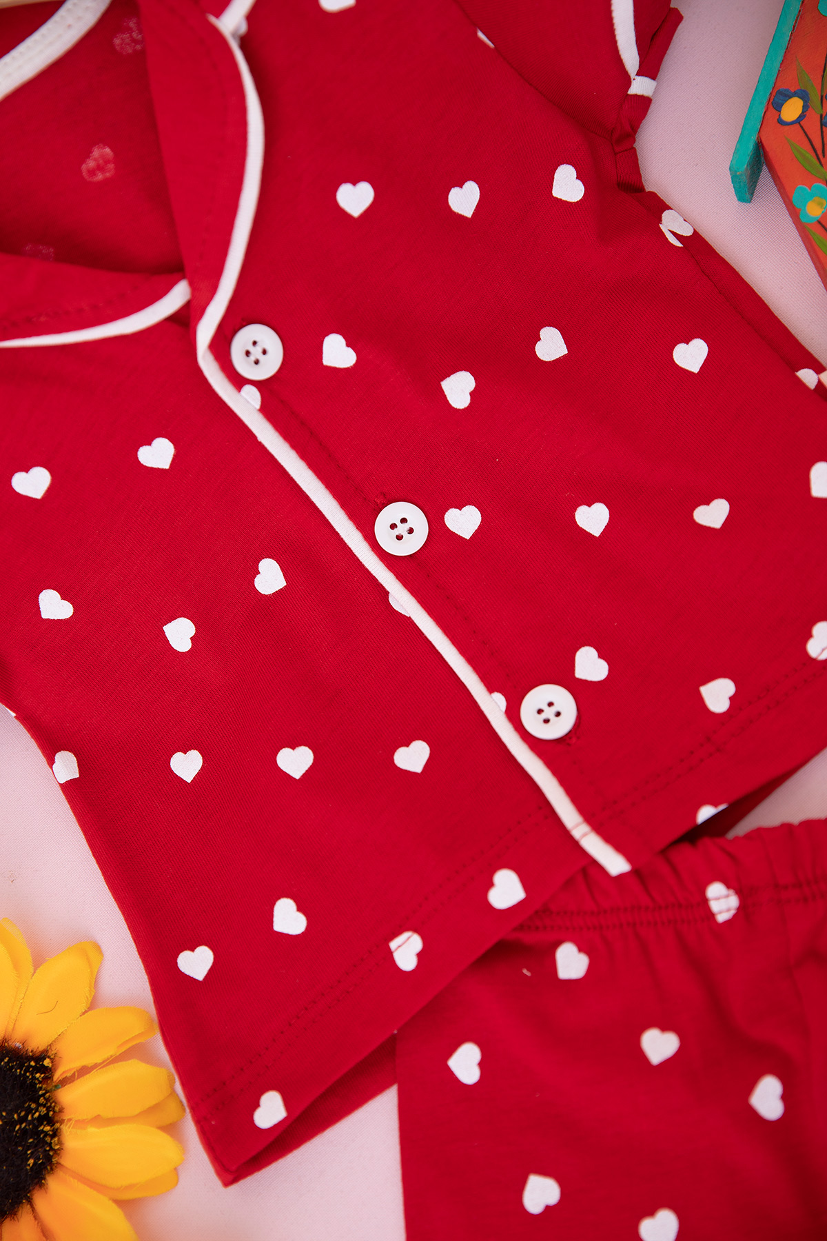 Kız Bebek Küçük Kalp Şortlu Pijama Takım - 6098 (6-24 Ay)