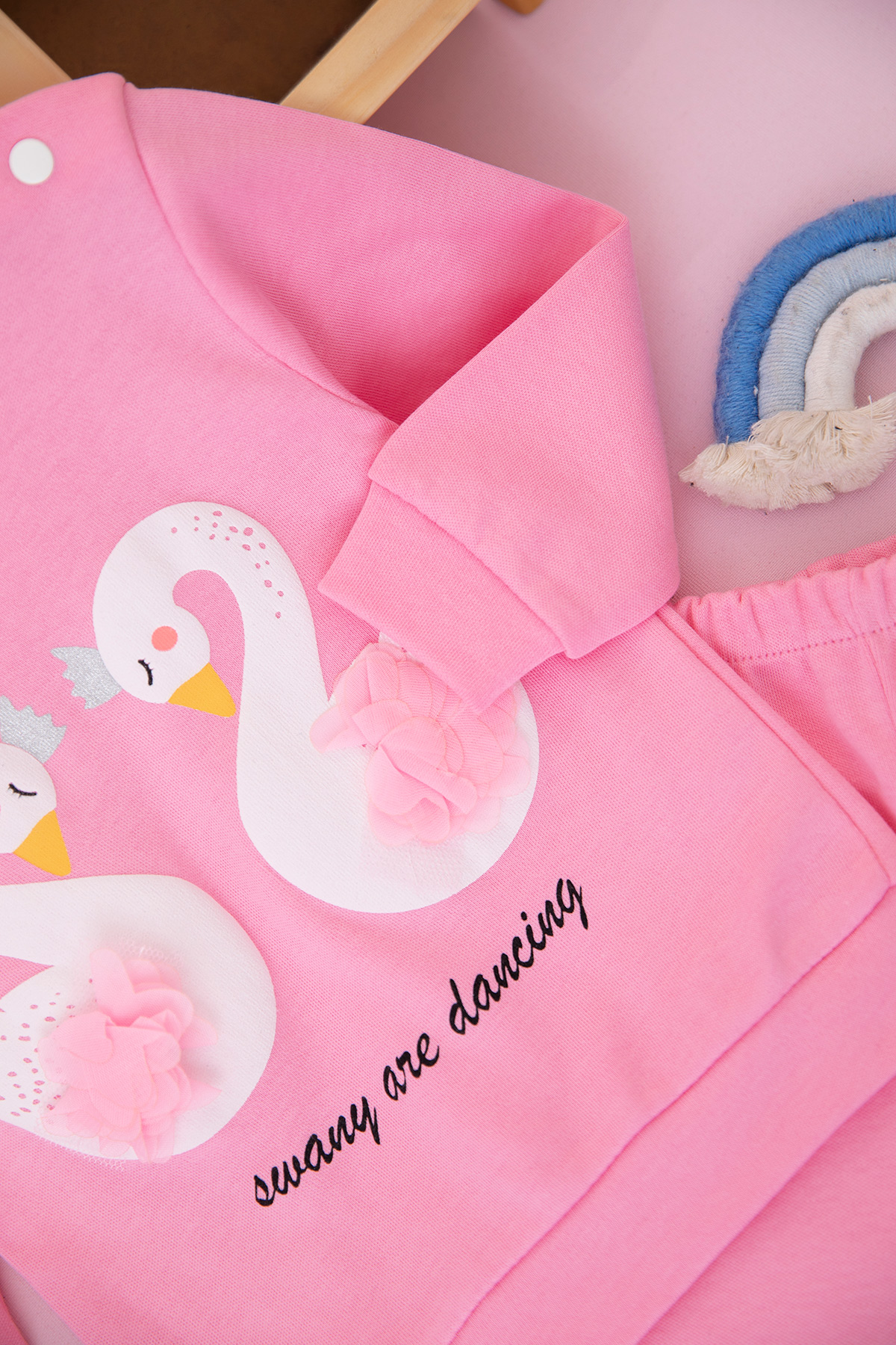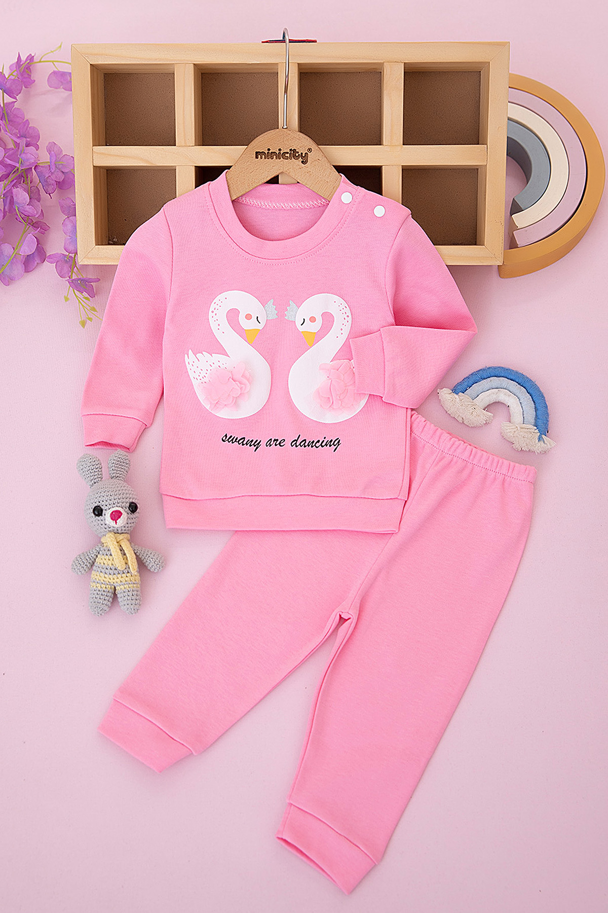 Kız Bebek Kuğu Baskılı Takım - 8493 (9-18 Ay)