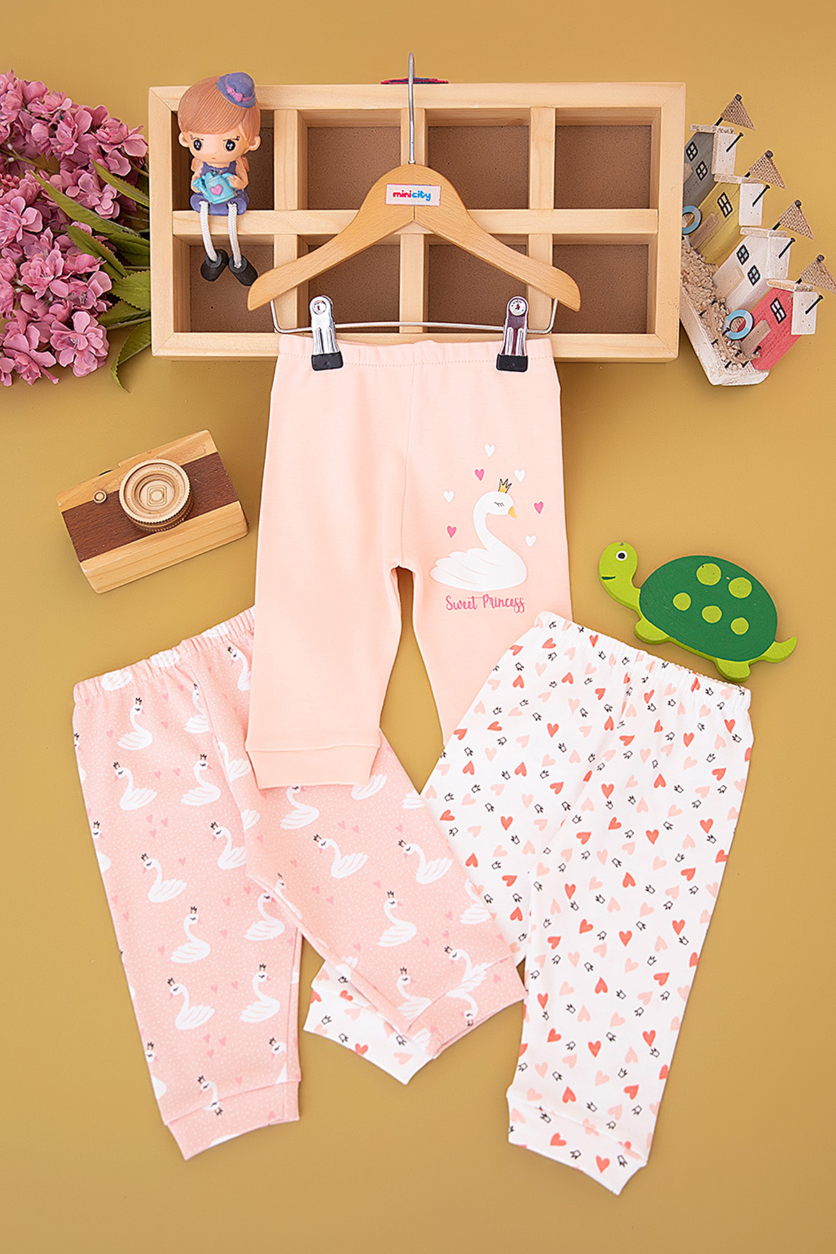 Kız Bebek Kuğu Baskılı Üçlü Tek Alt - 223130 (0-9 Ay)