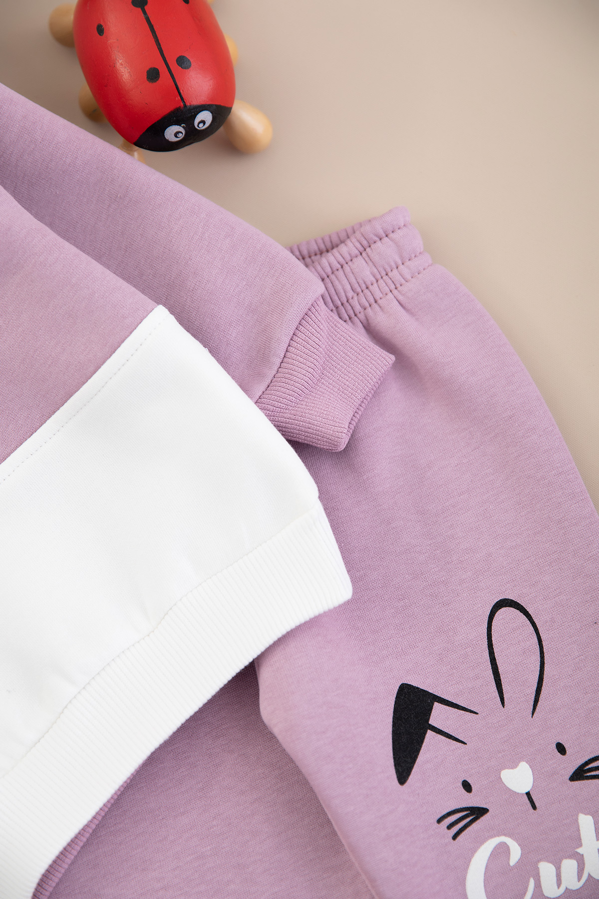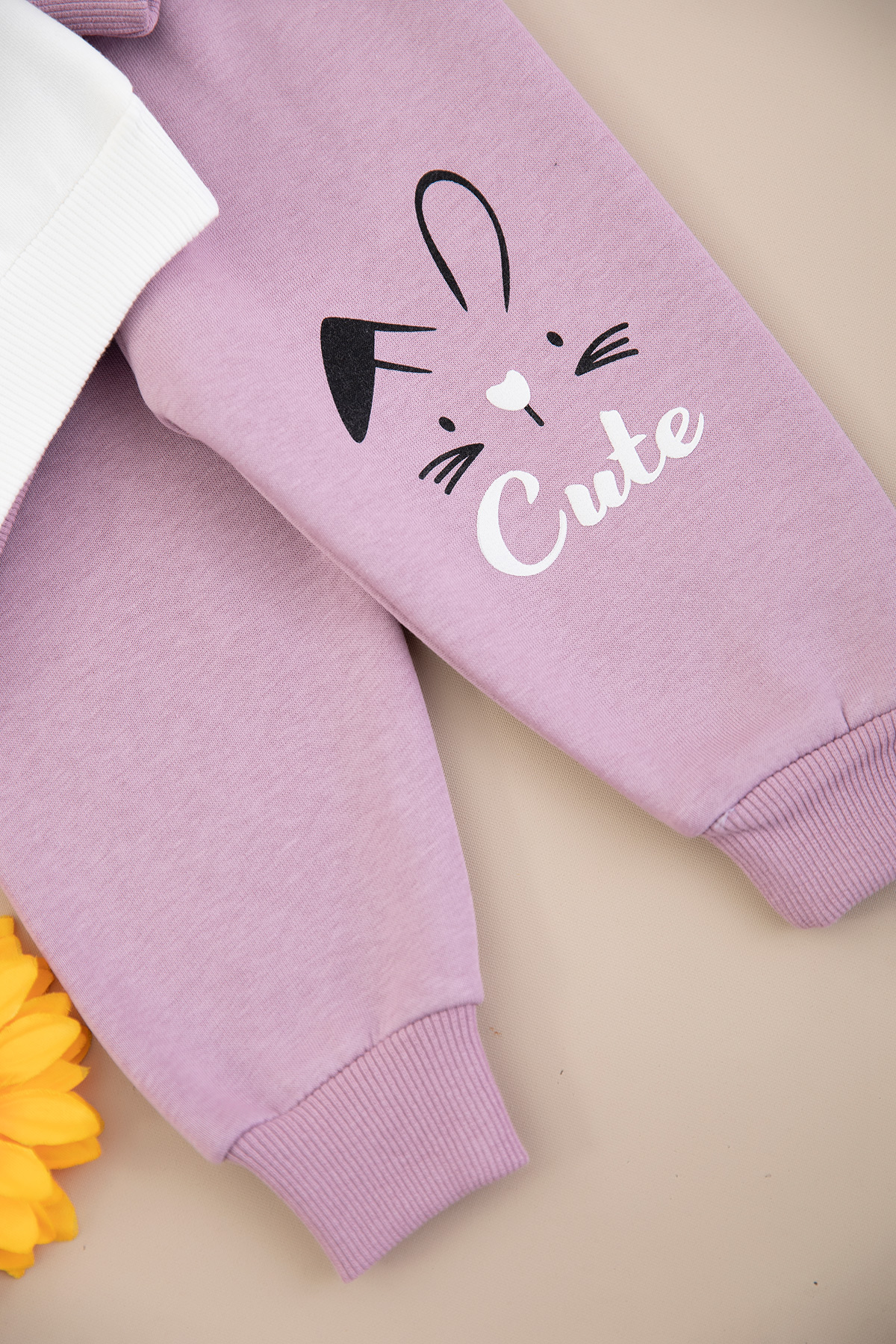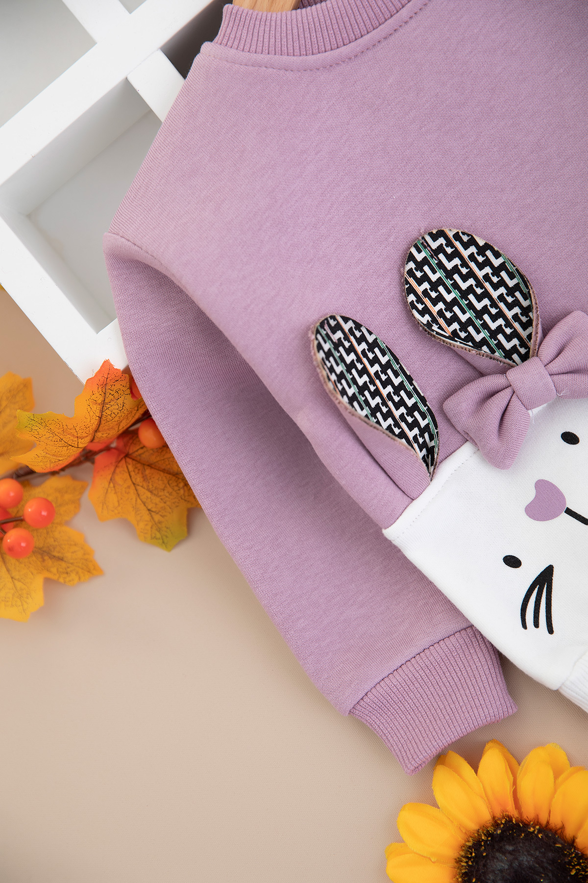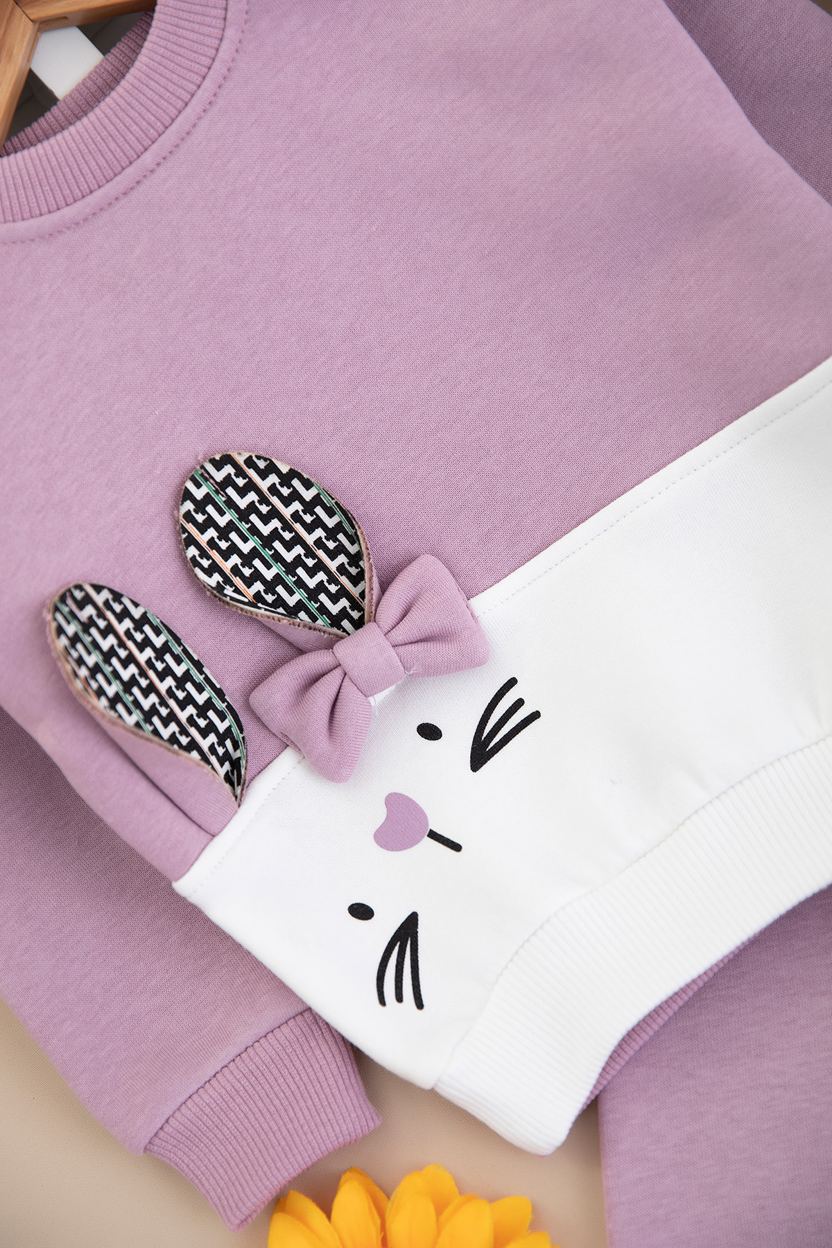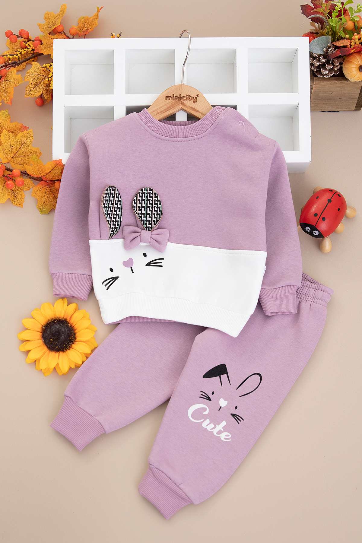 Kız Bebek Kulaklı Fiyonklu Üçip Takım - 25954 (9-24 Ay)