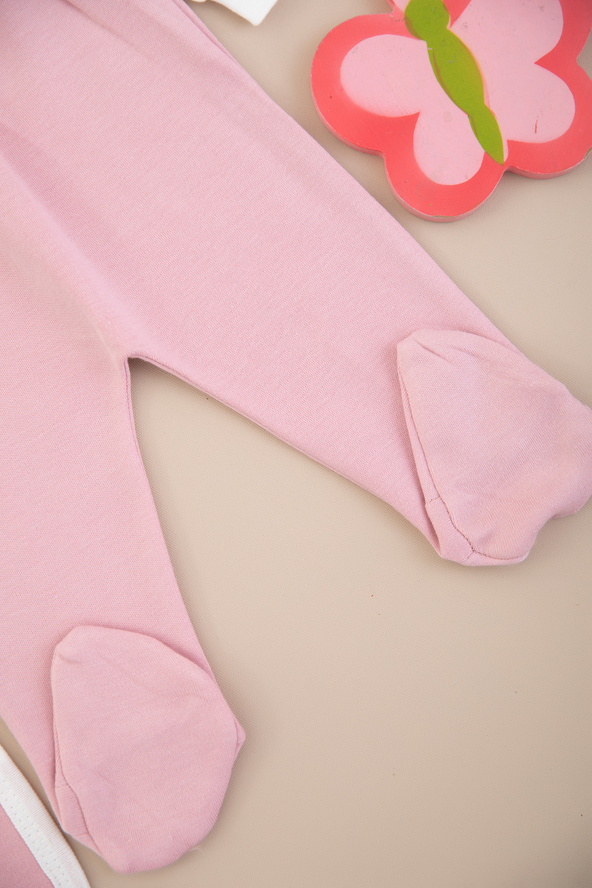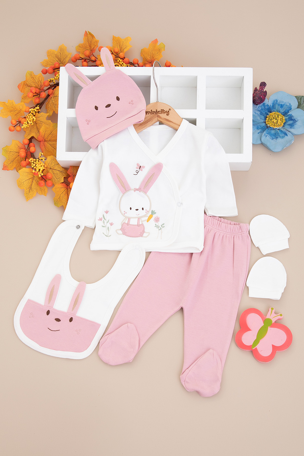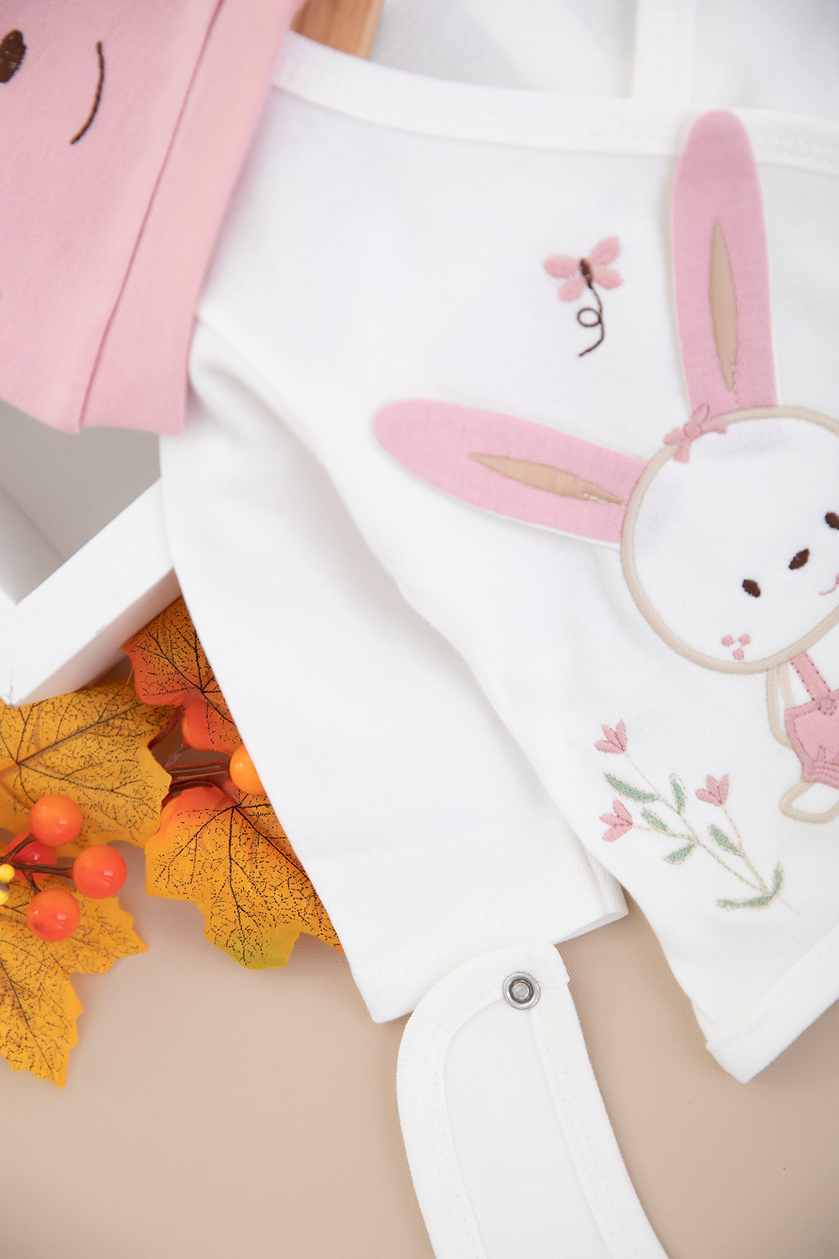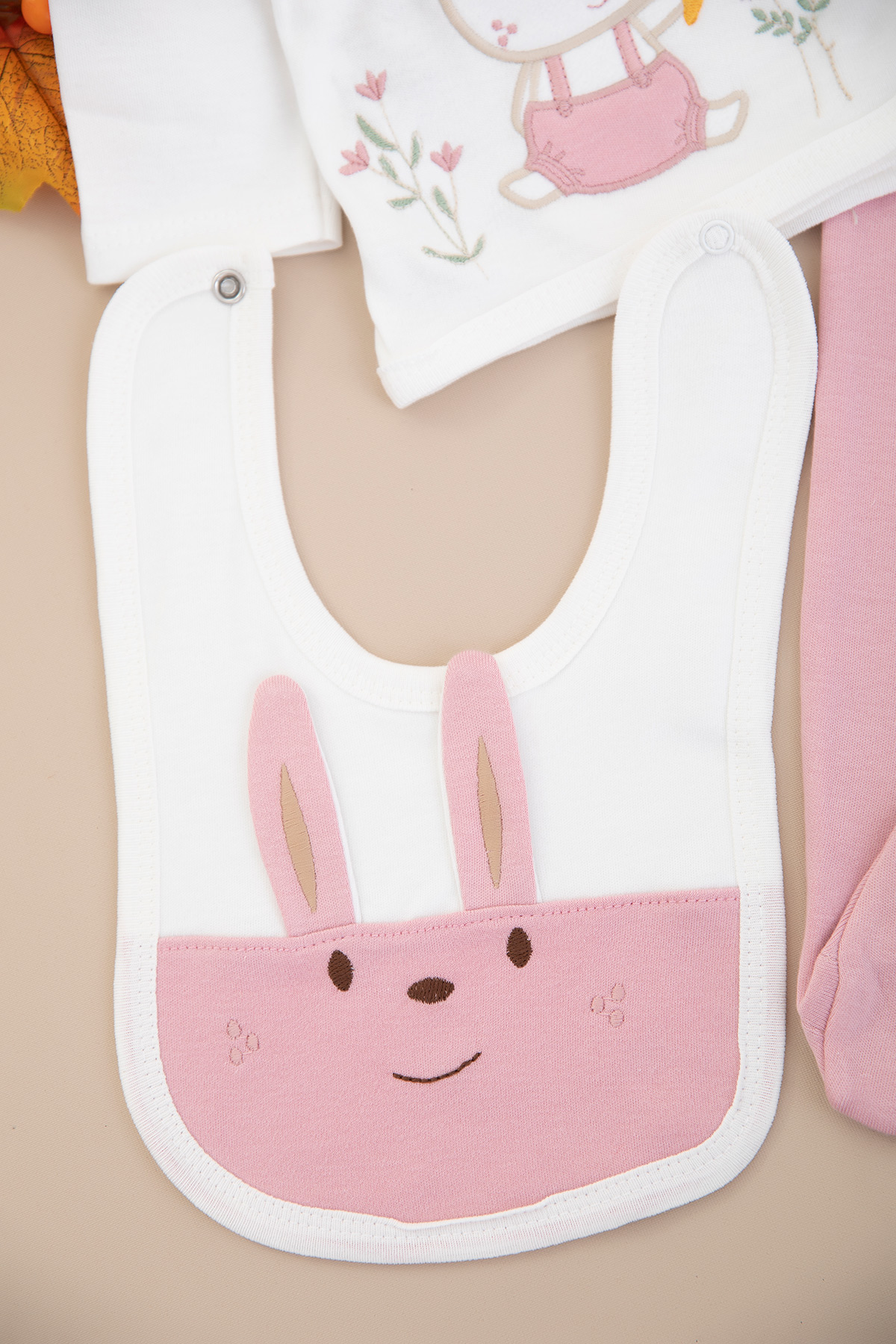 Kız Bebek Kulaklı Tavşan Nakışlı 5`Li Zıbın Seti