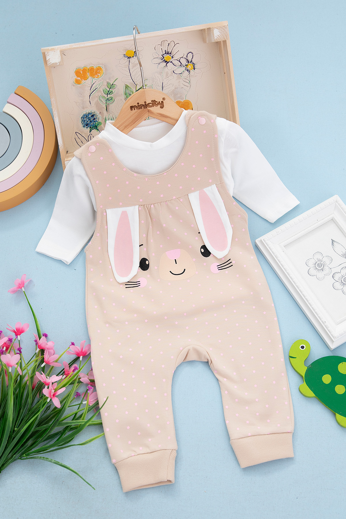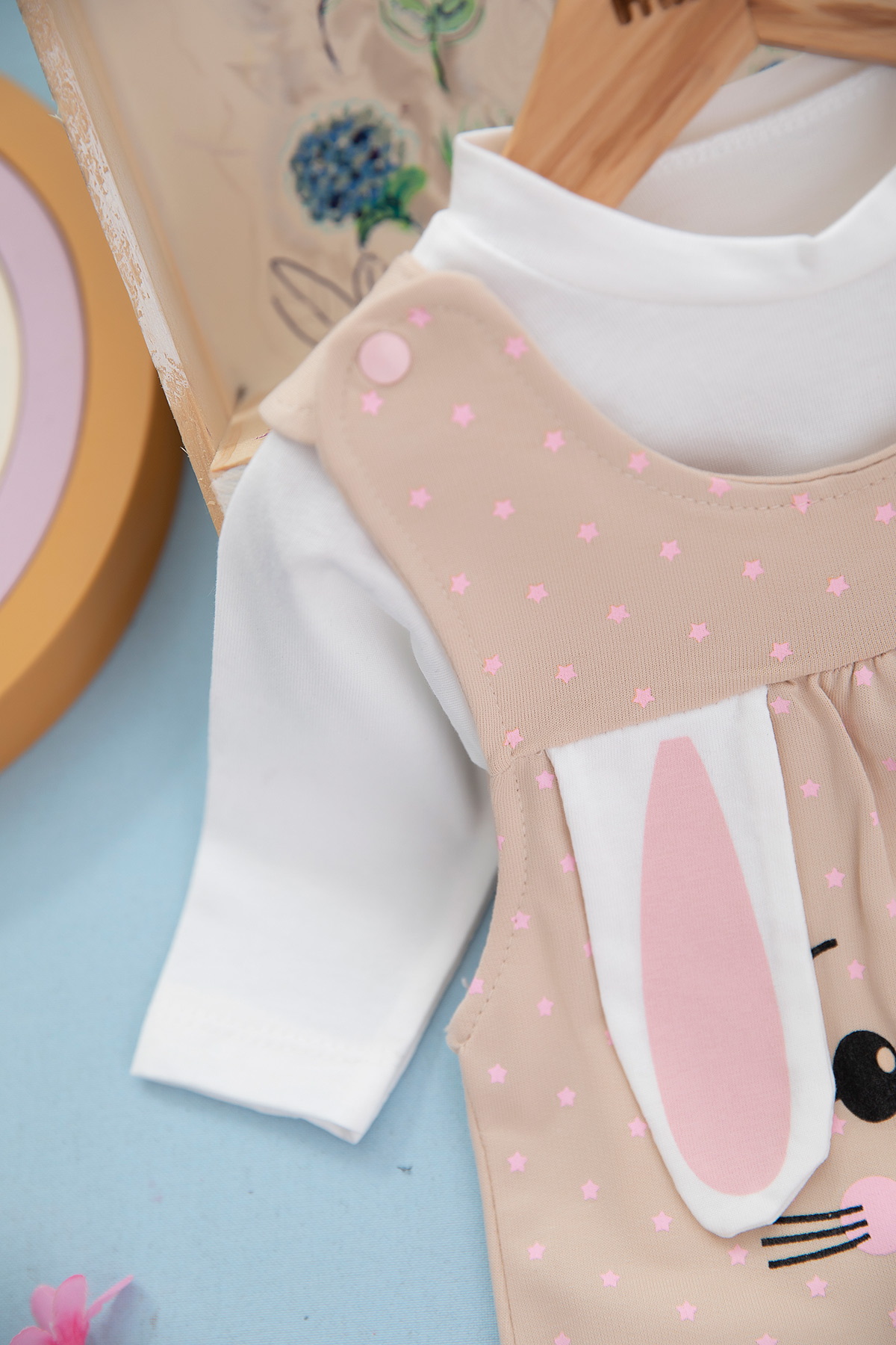 Kız Bebek Kulaklı Yıldızlı Tulum - 7207 (3-12 Ay)