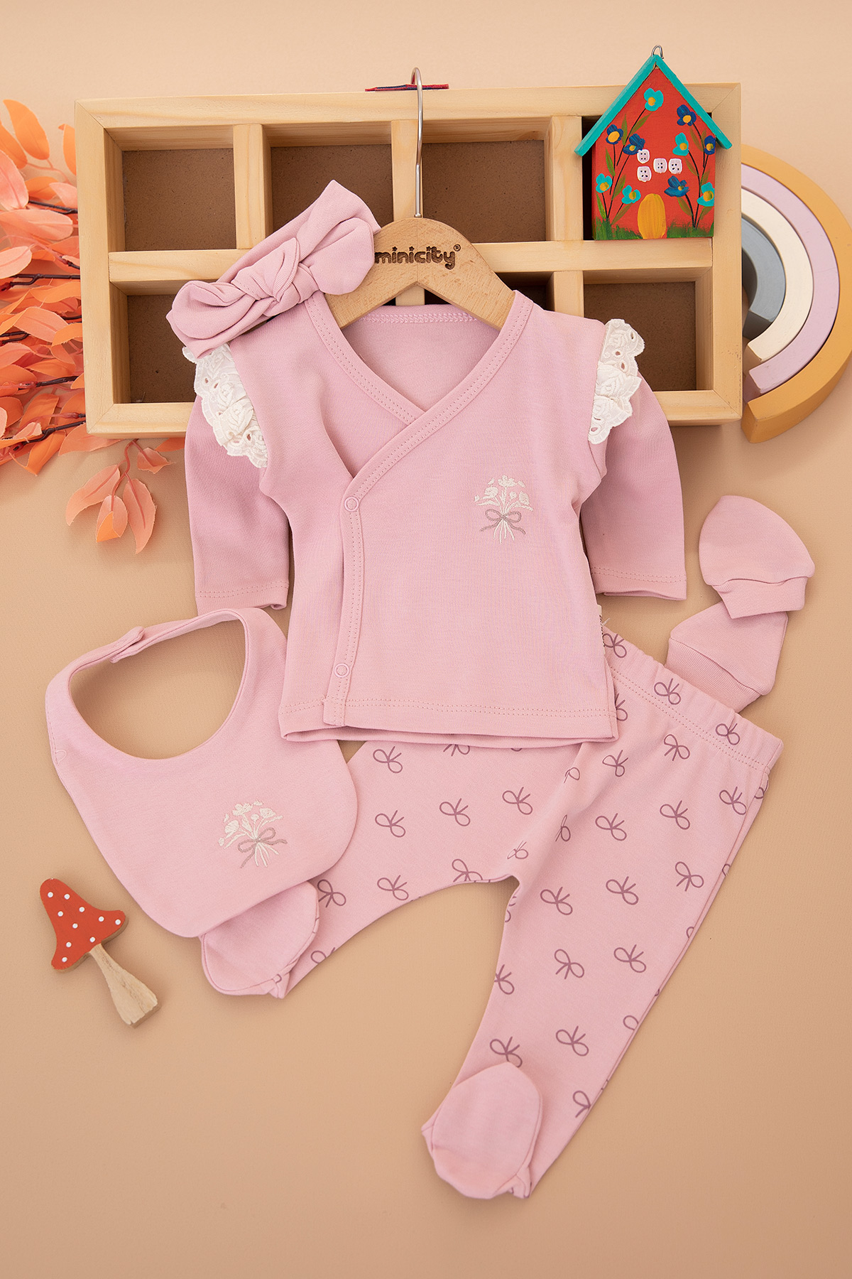 Kız Bebek Kurdela Baskılı 5`Li Zıbın Seti - 52871 (0-3 Ay)