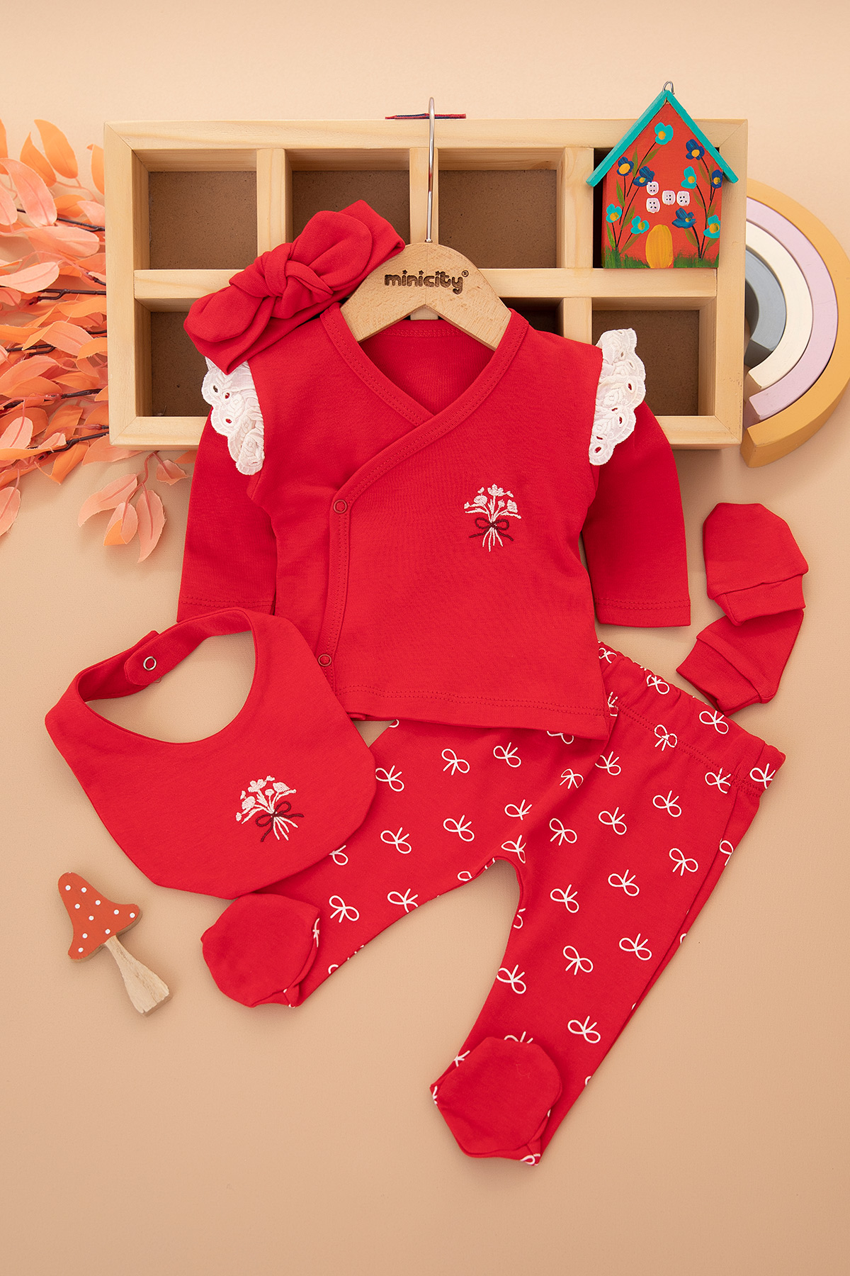 Kız Bebek Kurdela Baskılı 5`Li Zıbın Seti - 52871 (0-3 Ay)