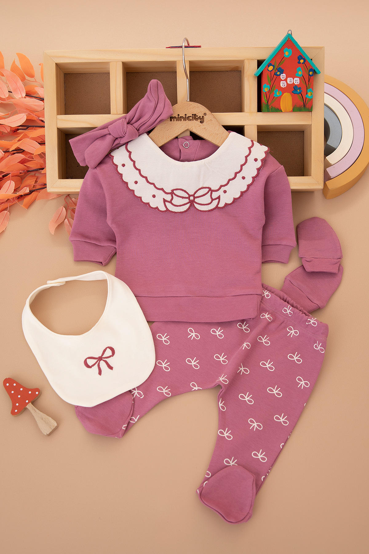 Kız Bebek Kurdela Yaka 5`Li Zıbın Seti - 52872 (0-3 Ay)