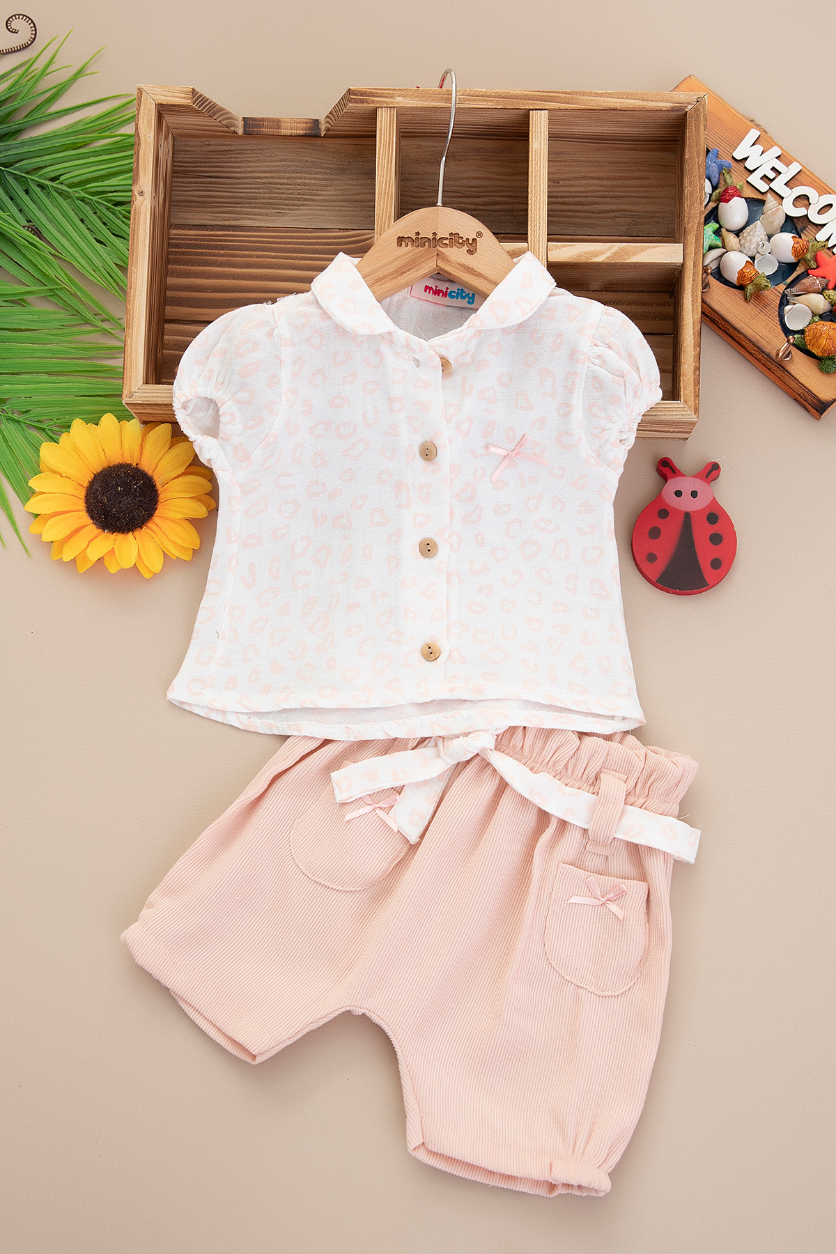 Kız Bebek Kurdelalı Leopar Şortlu Takım - 0528 (6-18 Ay)