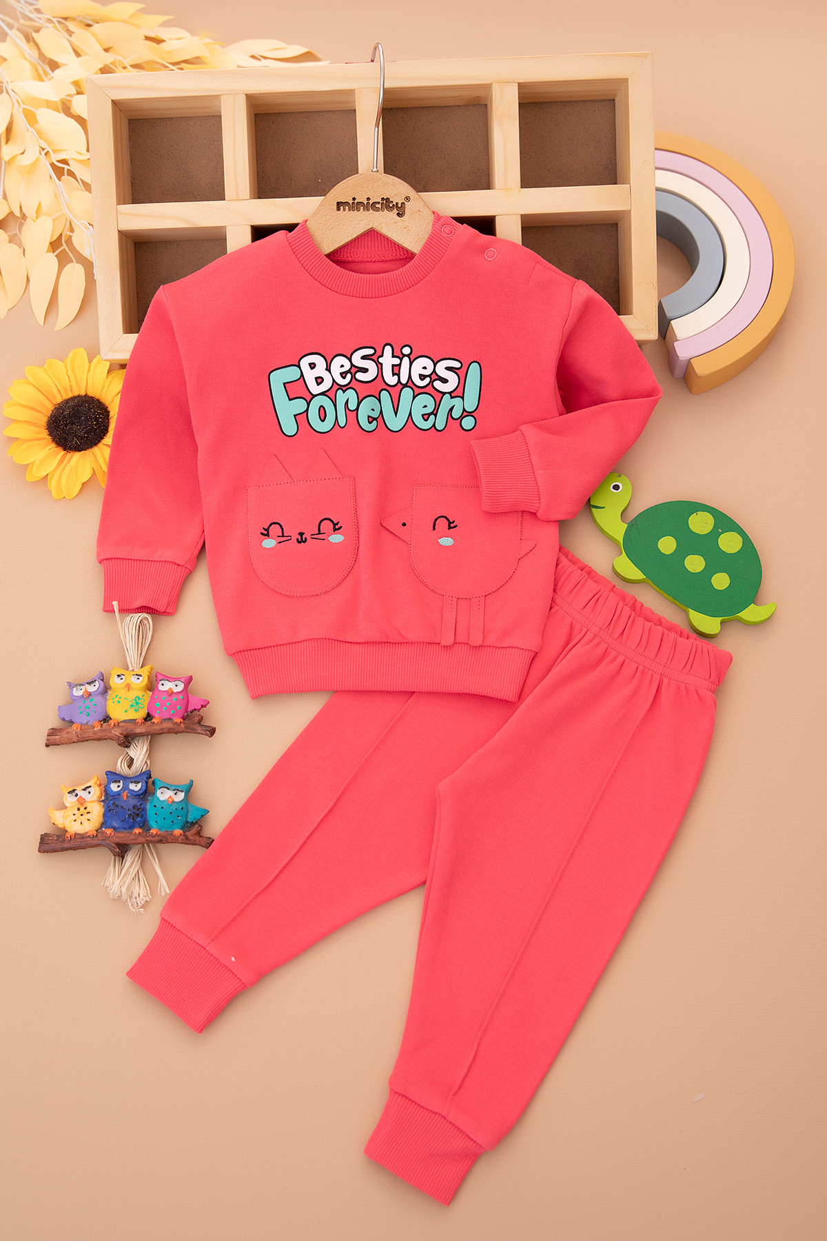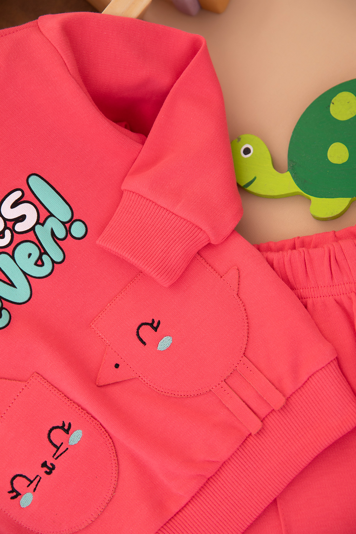 Kız Bebek Kuş Nakışlı Frover Baskılı Takım - 24616 (9-24 Ay)