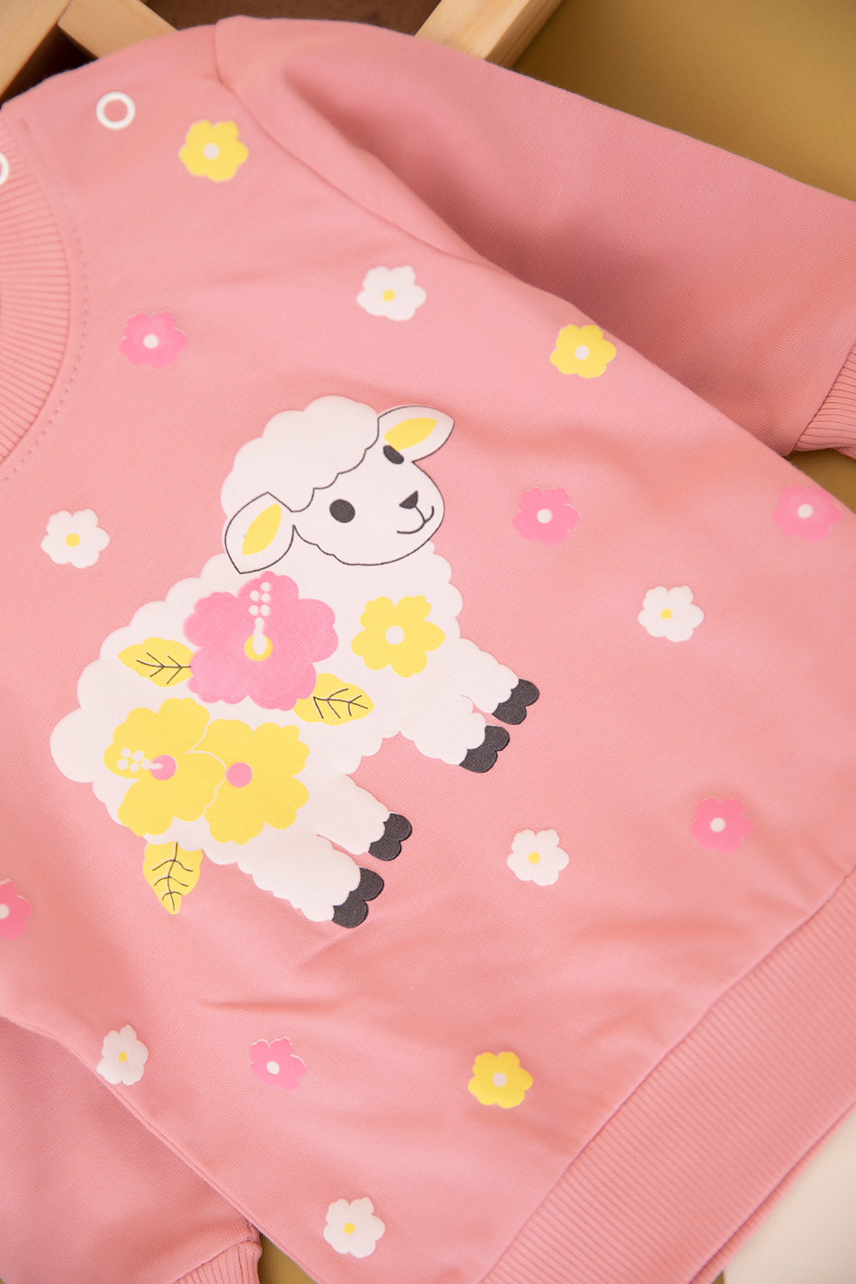 Kız Bebek Kuzu Baskılı Takım - 1096 (6-18 Ay)