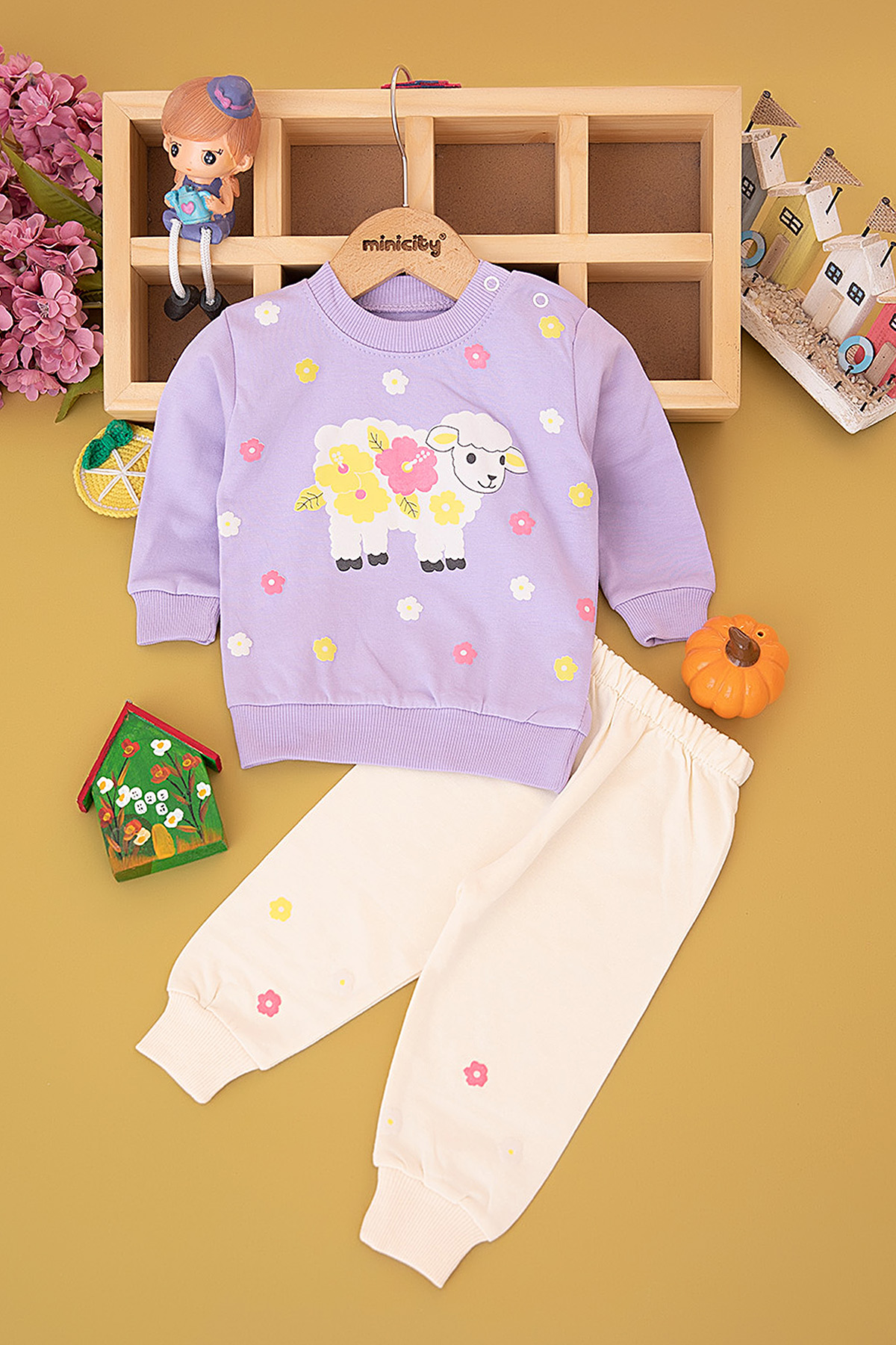 Kız Bebek Kuzu Baskılı Takım - 1096 (6-18 Ay)