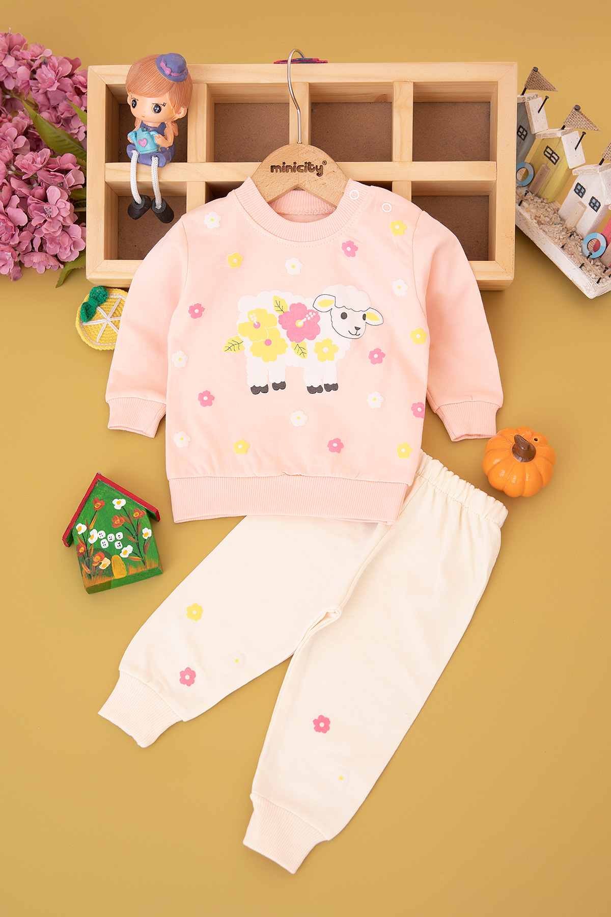 Kız Bebek Kuzu Baskılı Takım - 1096 (6-18 Ay)