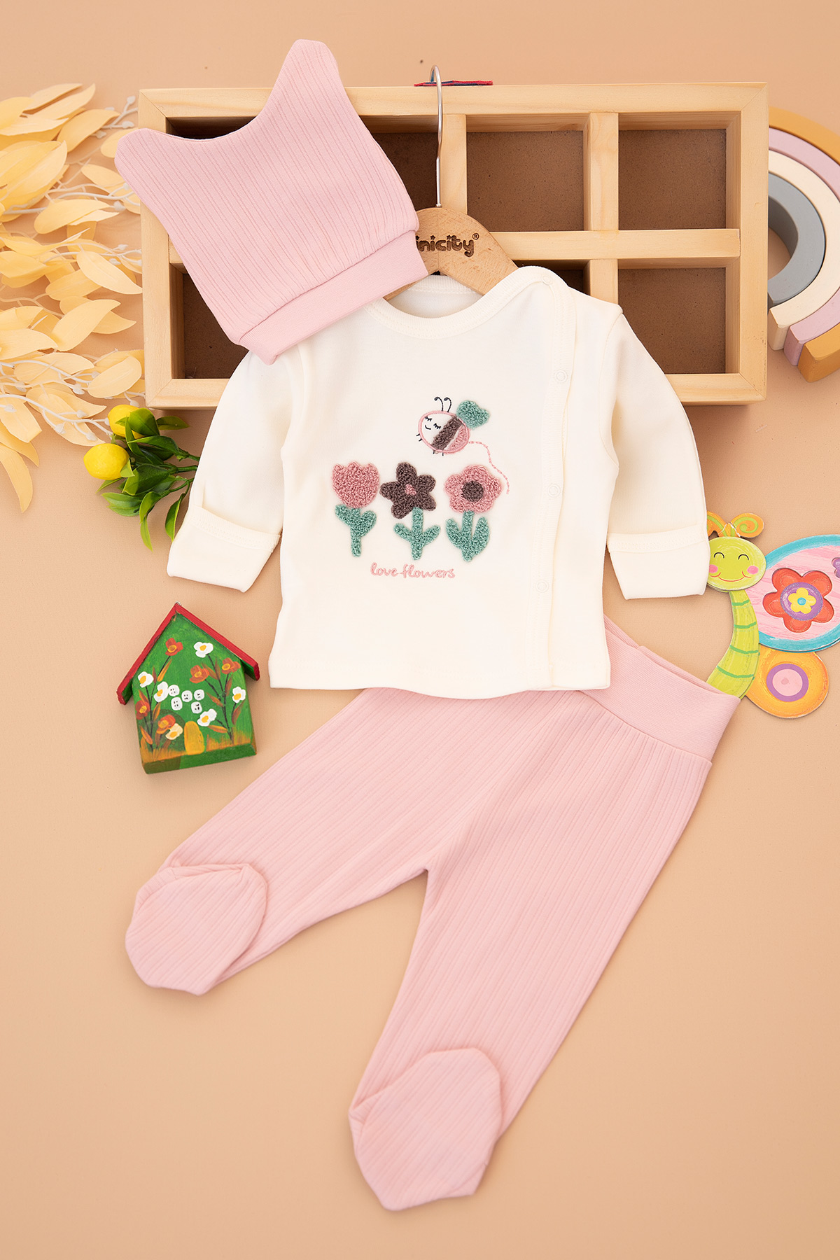 Kız Bebek Lale Arı Süzene Zıbın Takımı - 9404 (0-3 Ay)