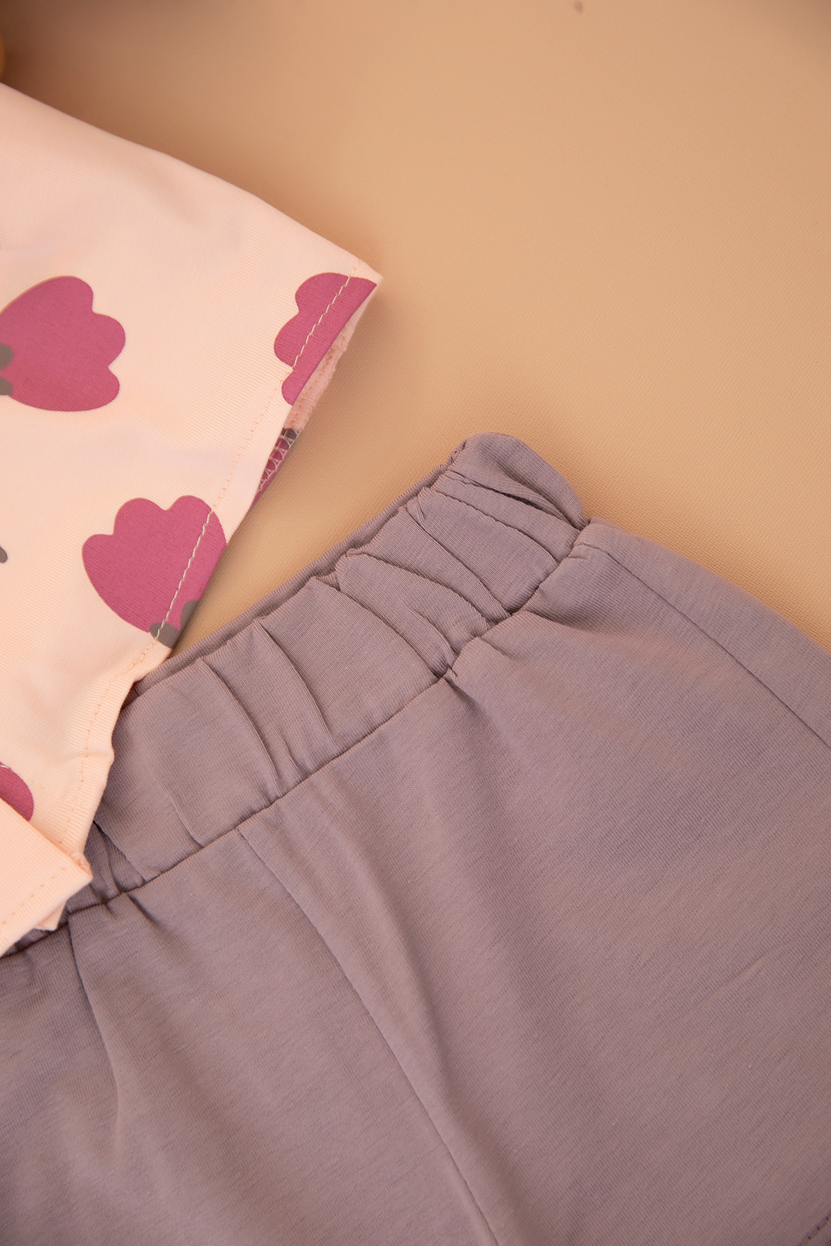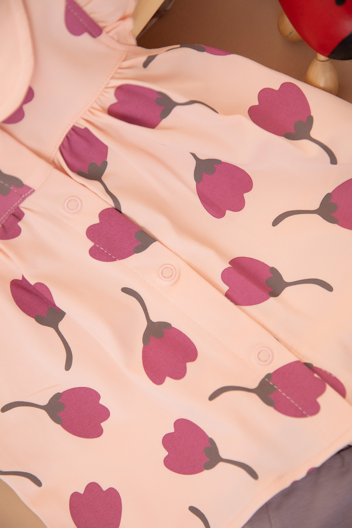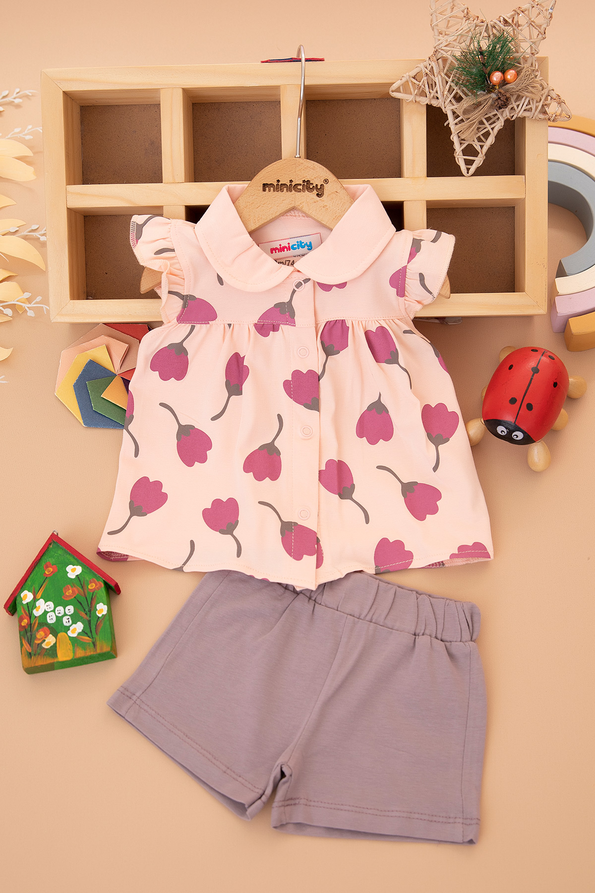 Kız Bebek Lale Baskılı Şortlu Takım - 25312 (9-24 Ay)