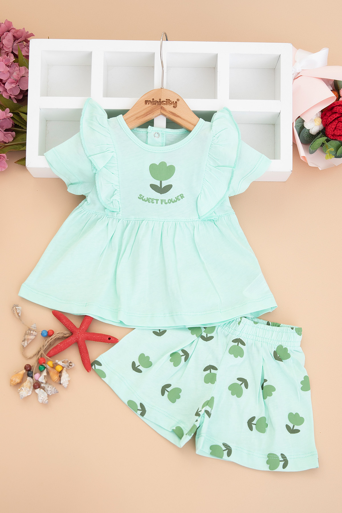 Kız Bebek Lale Baskılı Şortlu Takım - 26566 (9-24 Ay)