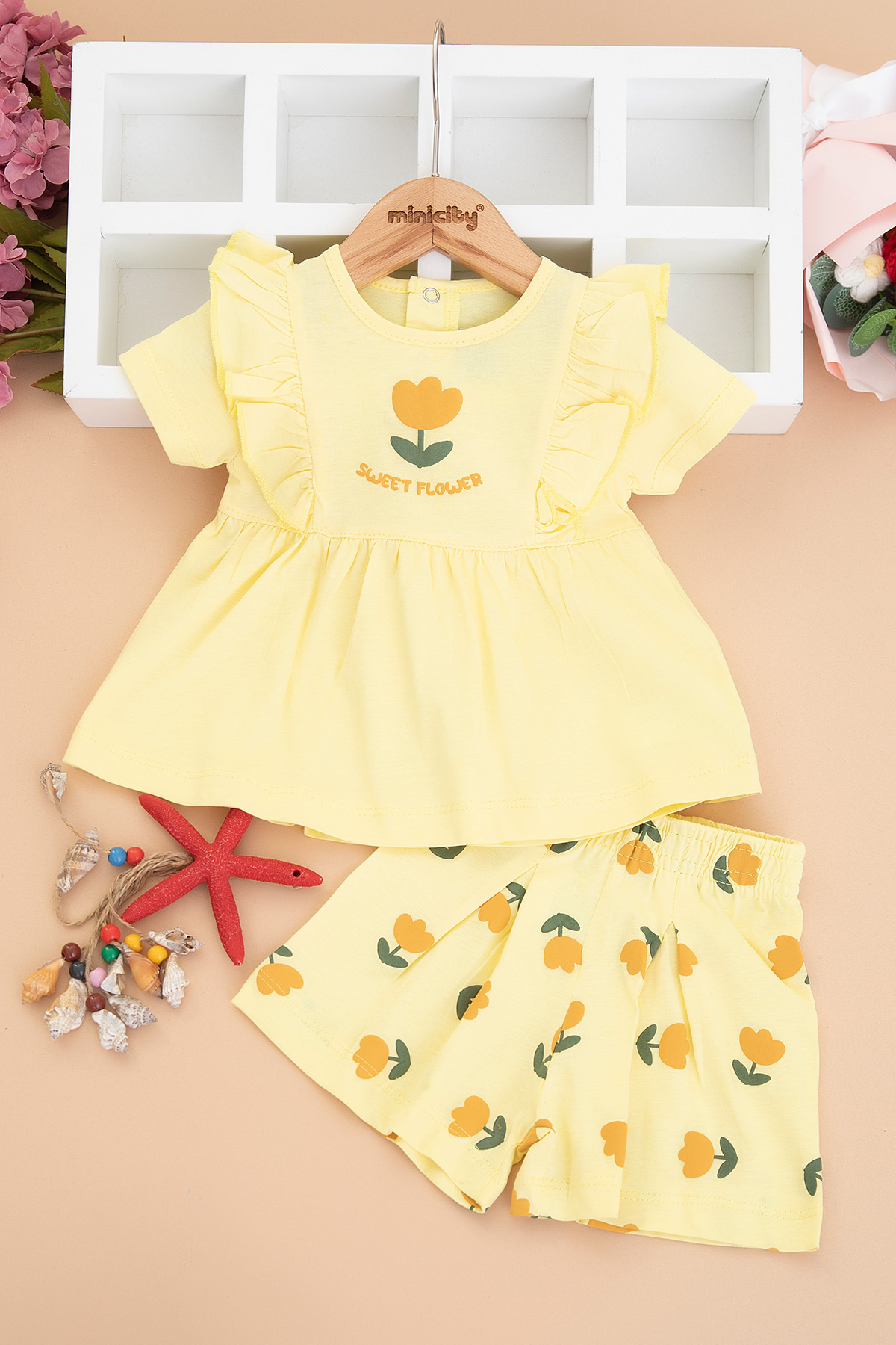Kız Bebek Lale Baskılı Şortlu Takım - 26566 (9-24 Ay)