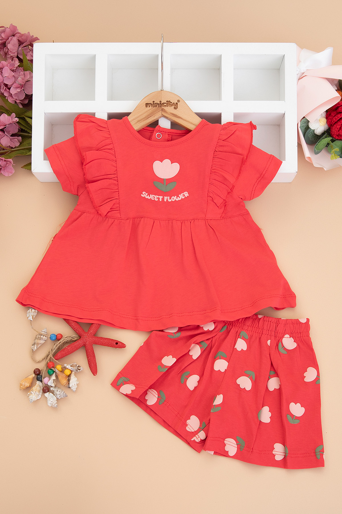 Kız Bebek Lale Baskılı Şortlu Takım - 26566 (9-24 Ay)
