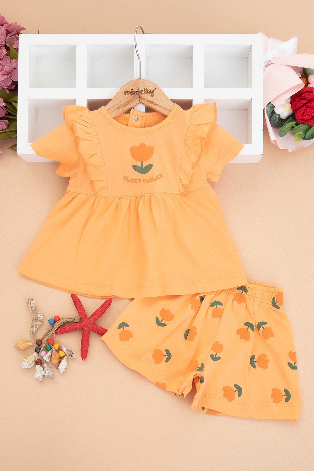 Kız Bebek Lale Baskılı Şortlu Takım - 26566 (9-24 Ay)