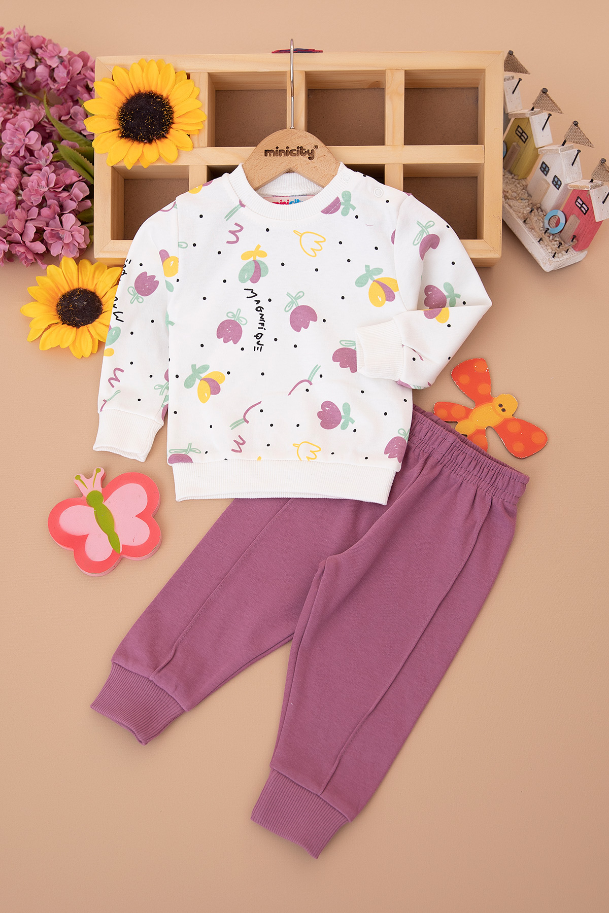 Kız Bebek Lale Desenli Takım - 26201 (9-24 Ay)