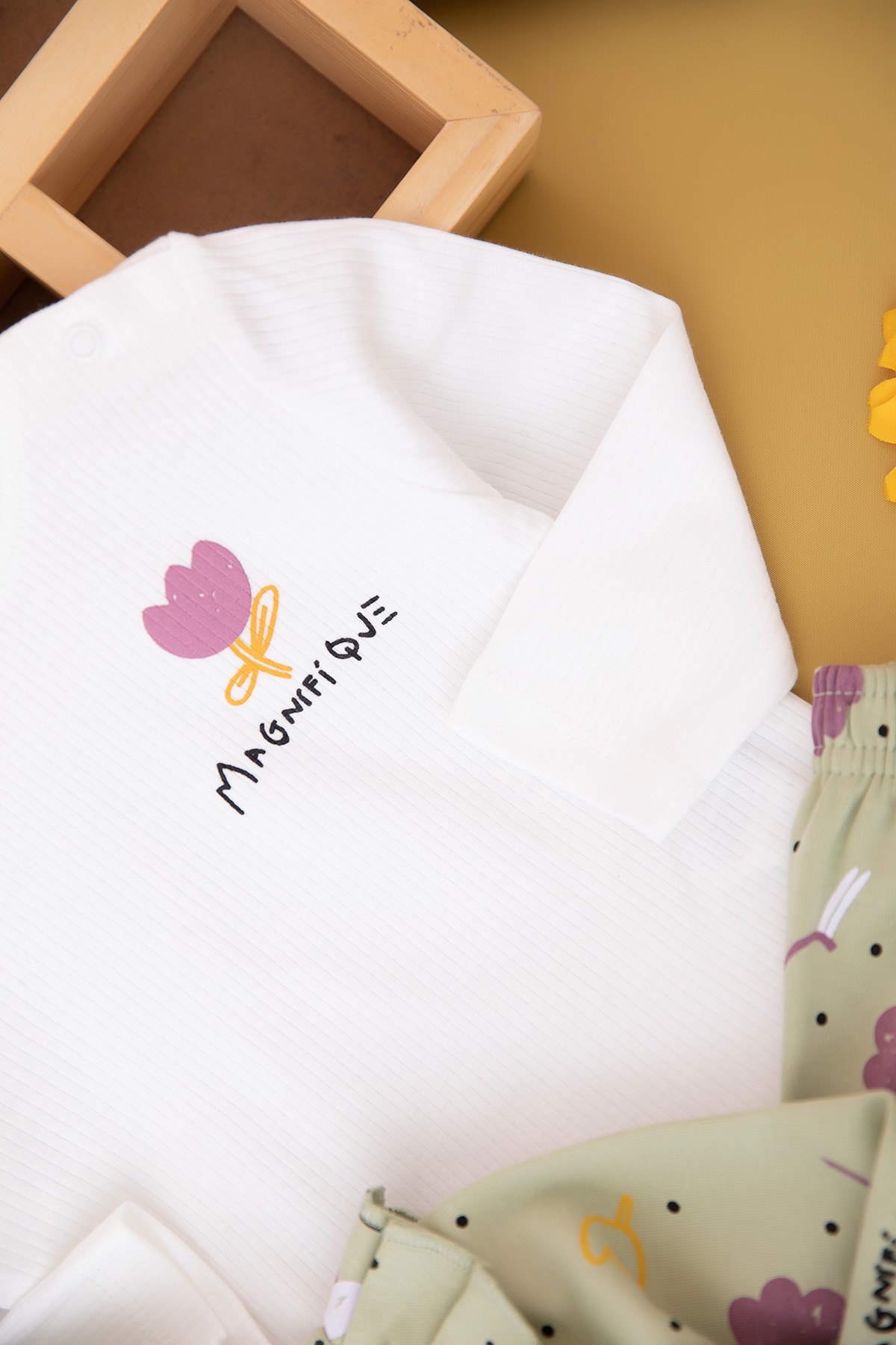 Kız Bebek Lale Desenli Üçlü Takım - 26209 (9-24 Ay)