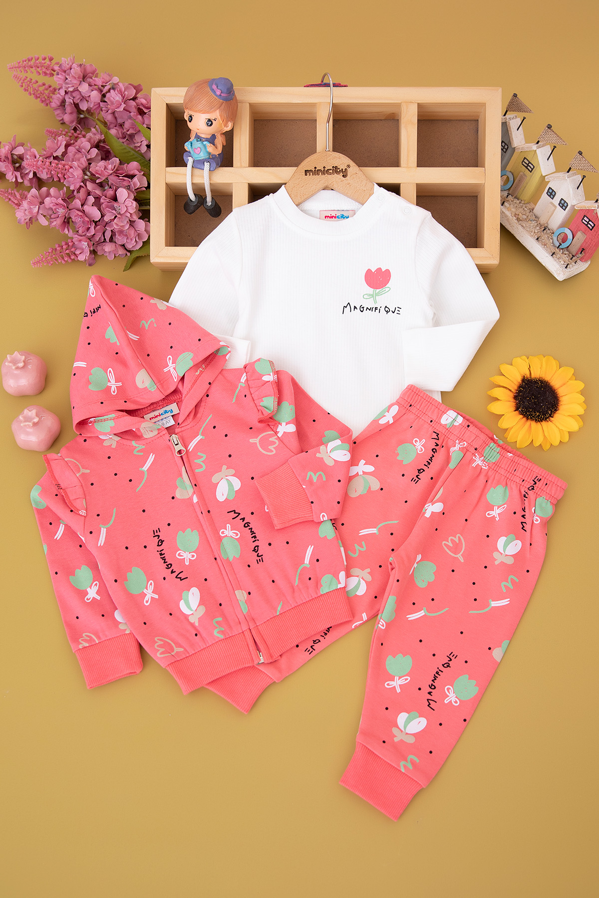 Kız Bebek Lale Desenli Üçlü Takım - 26209 (9-24 Ay)
