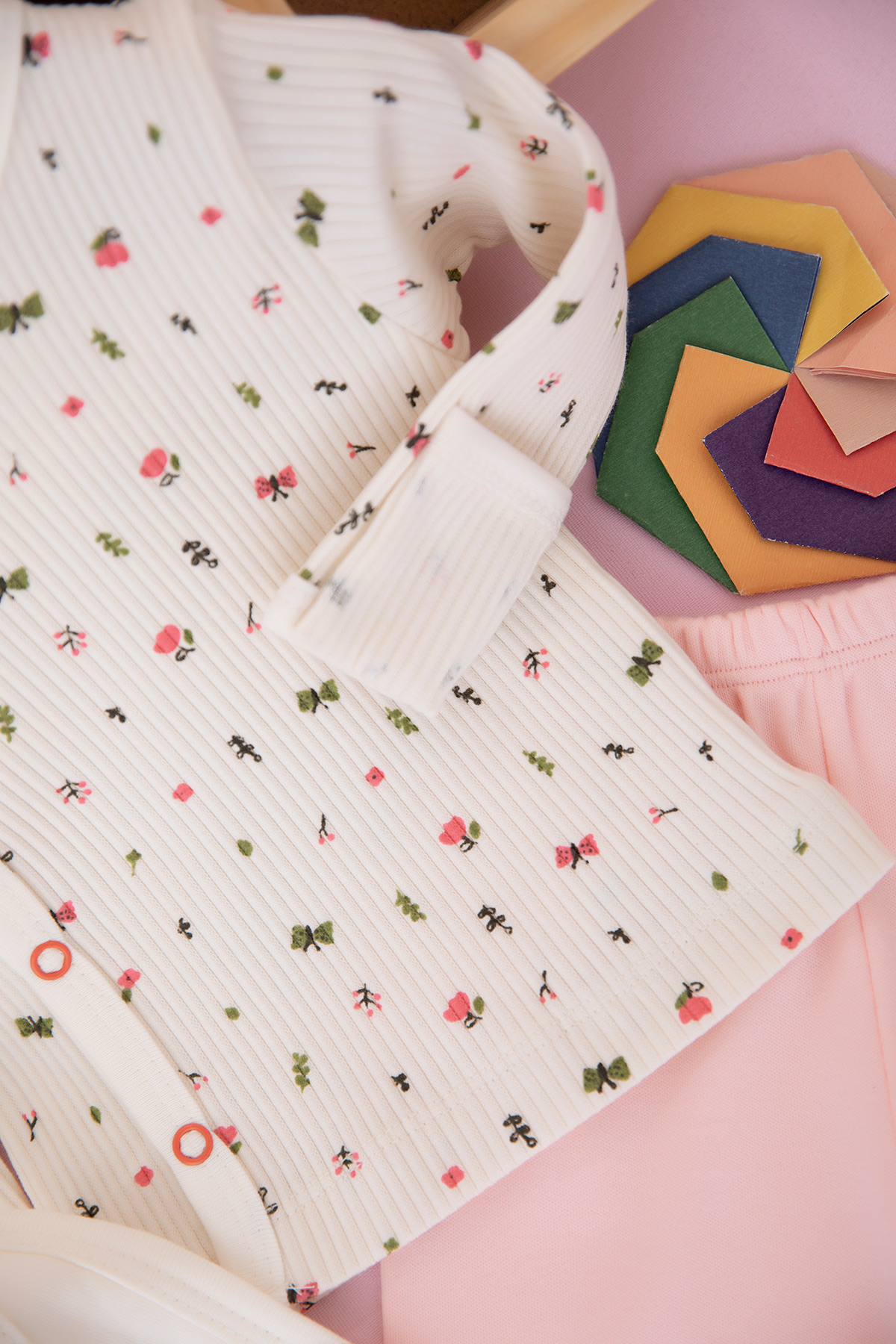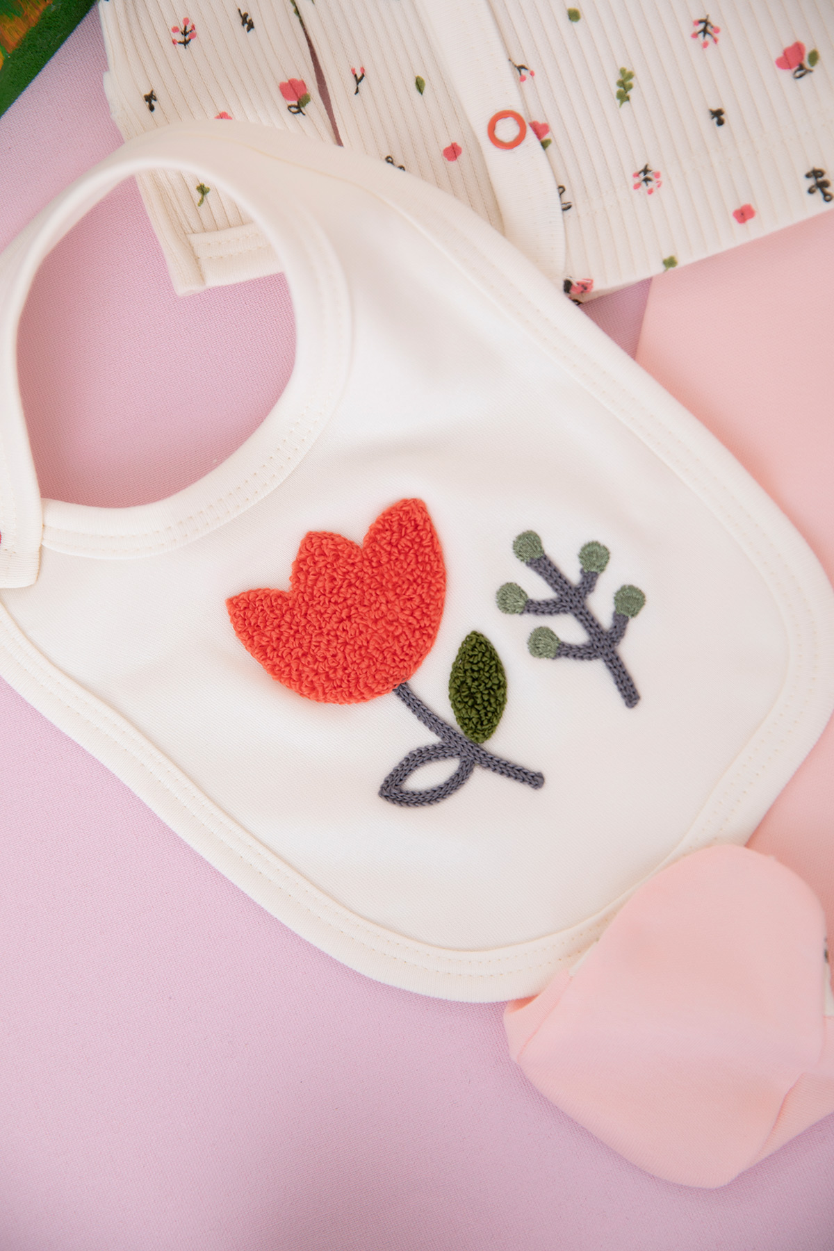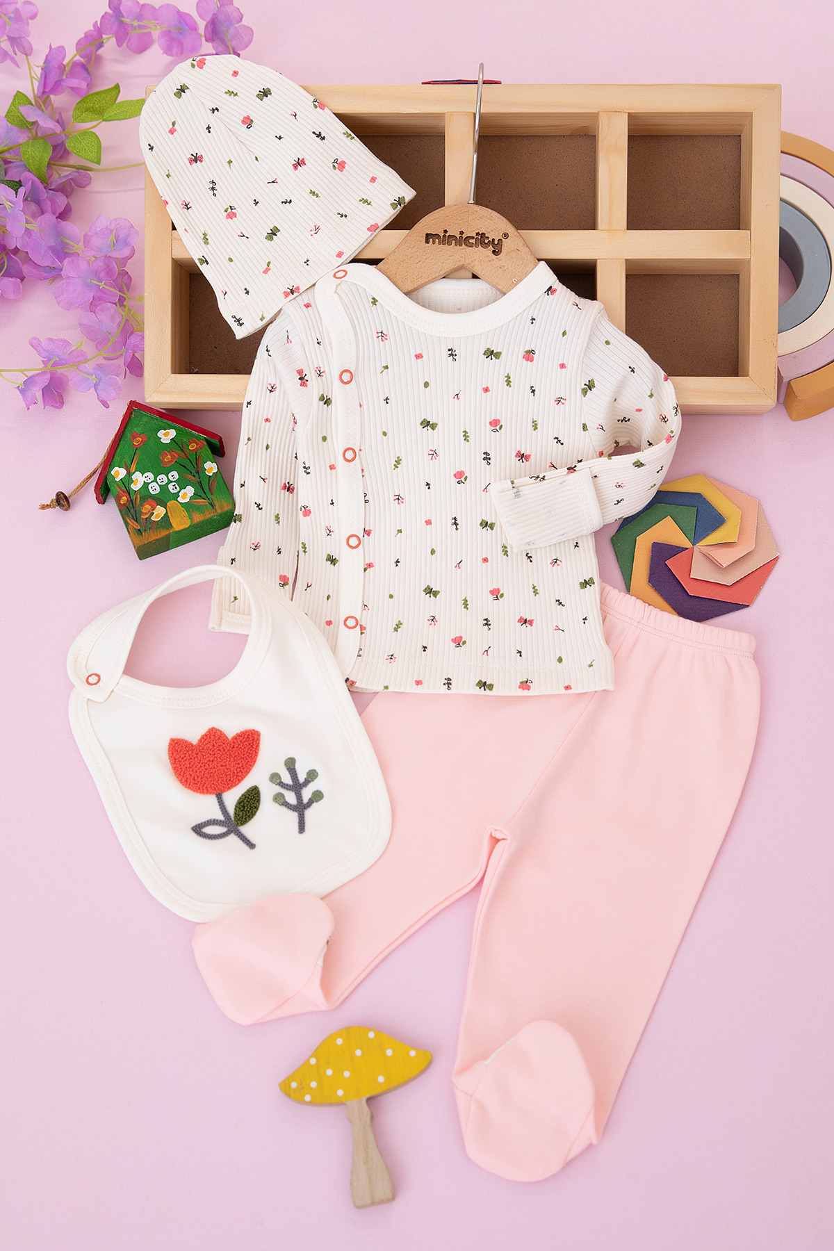 Kız Bebek Lale Nakışlı 4`Lü Zıbın Seti - 2168 (0-3 Ay)